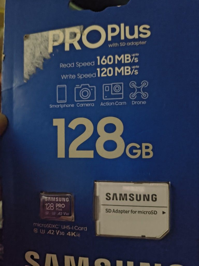 New, never opened. 128GB PRO Plus Sonic Edition microSDXC Card.