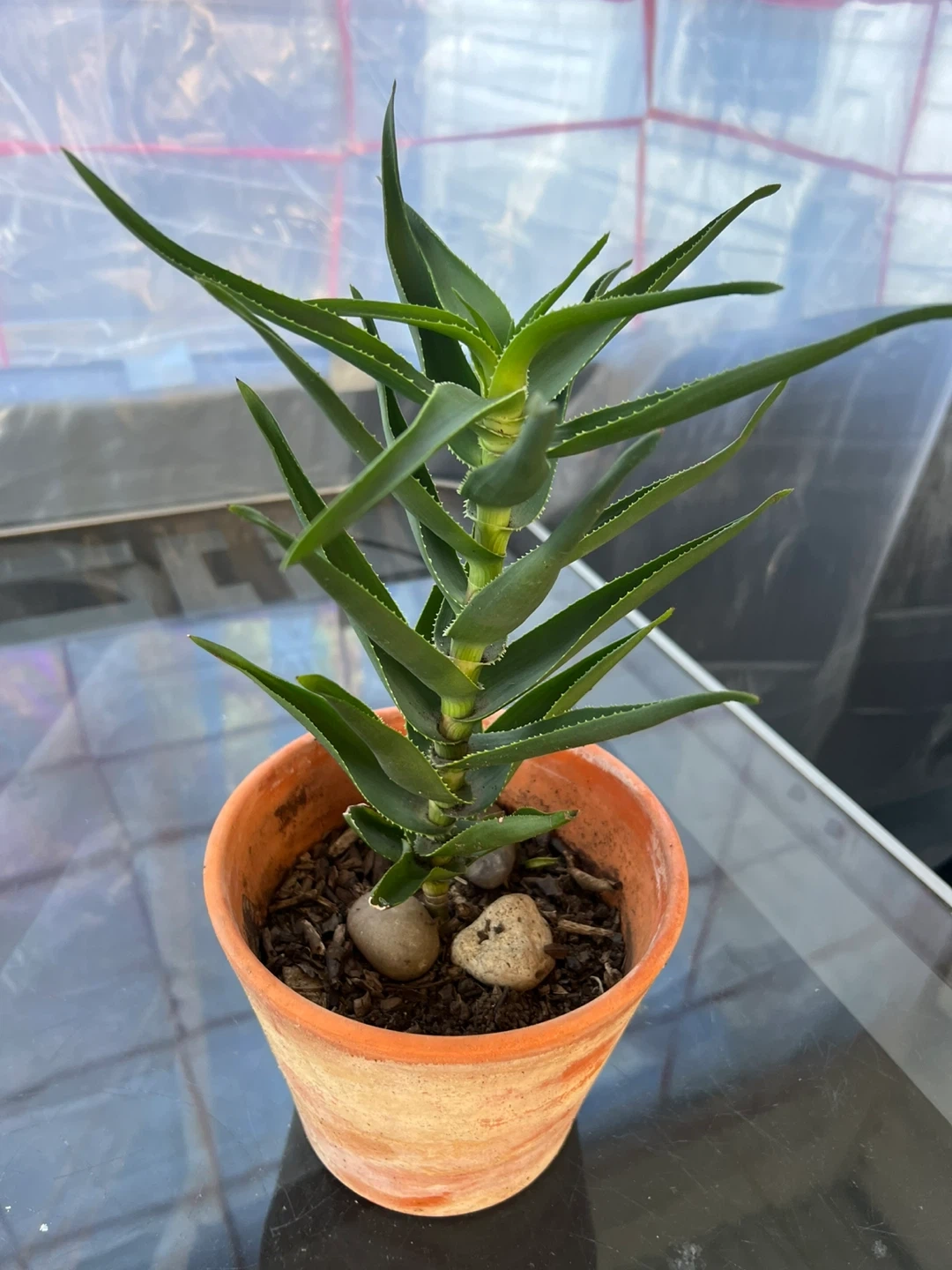 Charming climbing Aloe Plant in terracotta pot