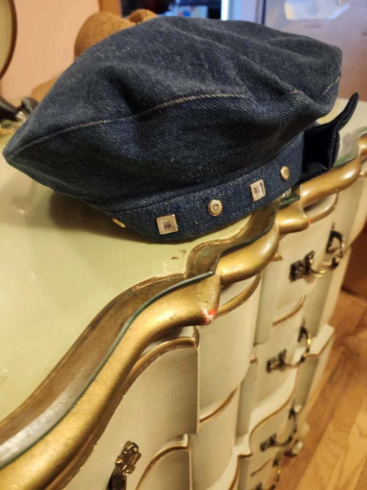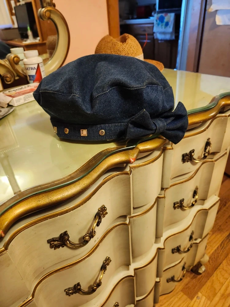 Here's a stylish denim beret hat! It's a unique accessory that can add a touch of flair to any outfit. The denim material gives it a casual yet chic look, perfect for everyday wear
