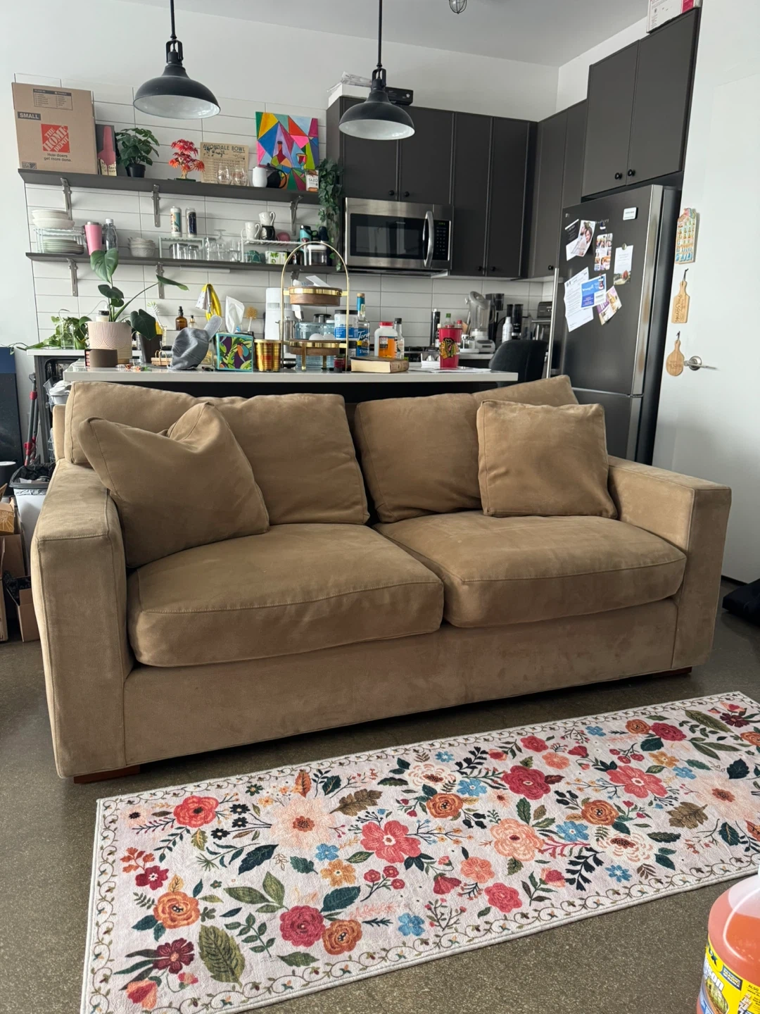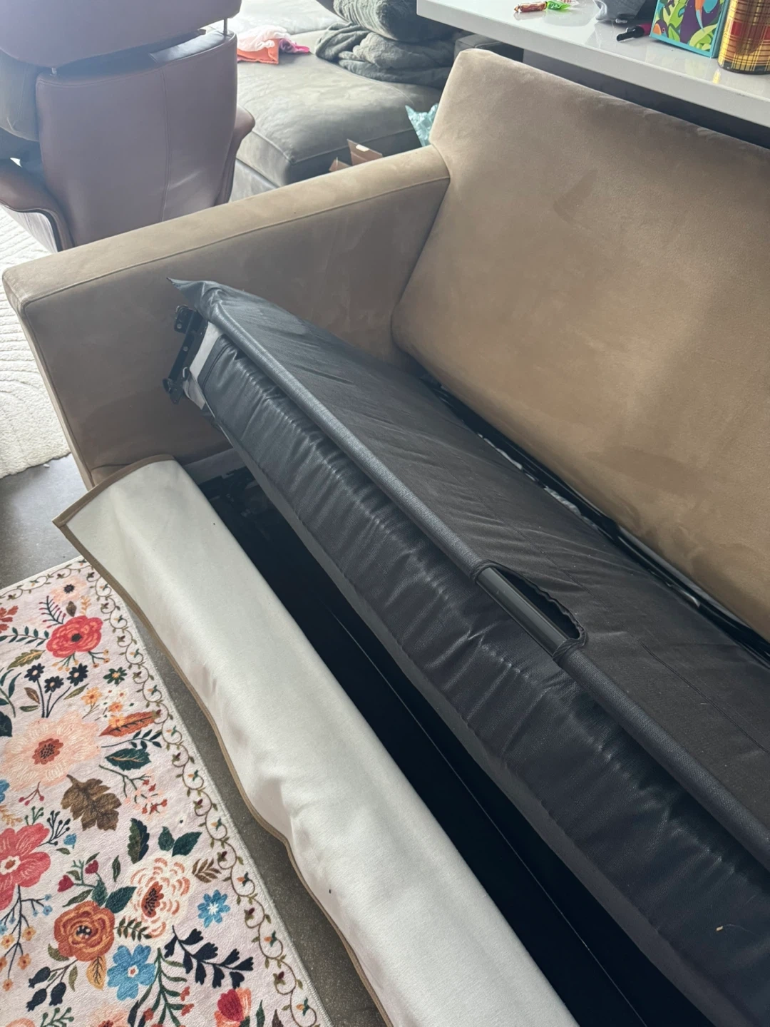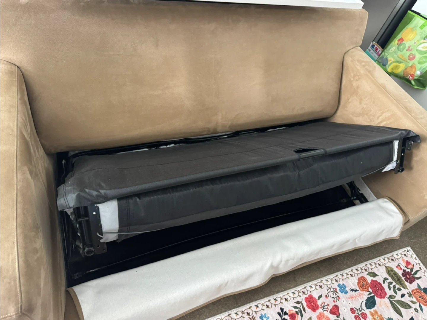 Pickup only in Pilsen. Great condition Axis sofa from Crate & Barrel with a full-sized pull out mattress inside, retails for $2799. Measures 75” x 42.5” x 32.5”. Fabric is a performance herringbone and still in great condition overall. Some tearing underneath the sofa but not visible and doesn’t affect performance. Can include full sized sheet set. This sofa weighs almost 200lbs so bring a friend and a dolly. From smoke free and pet free home.