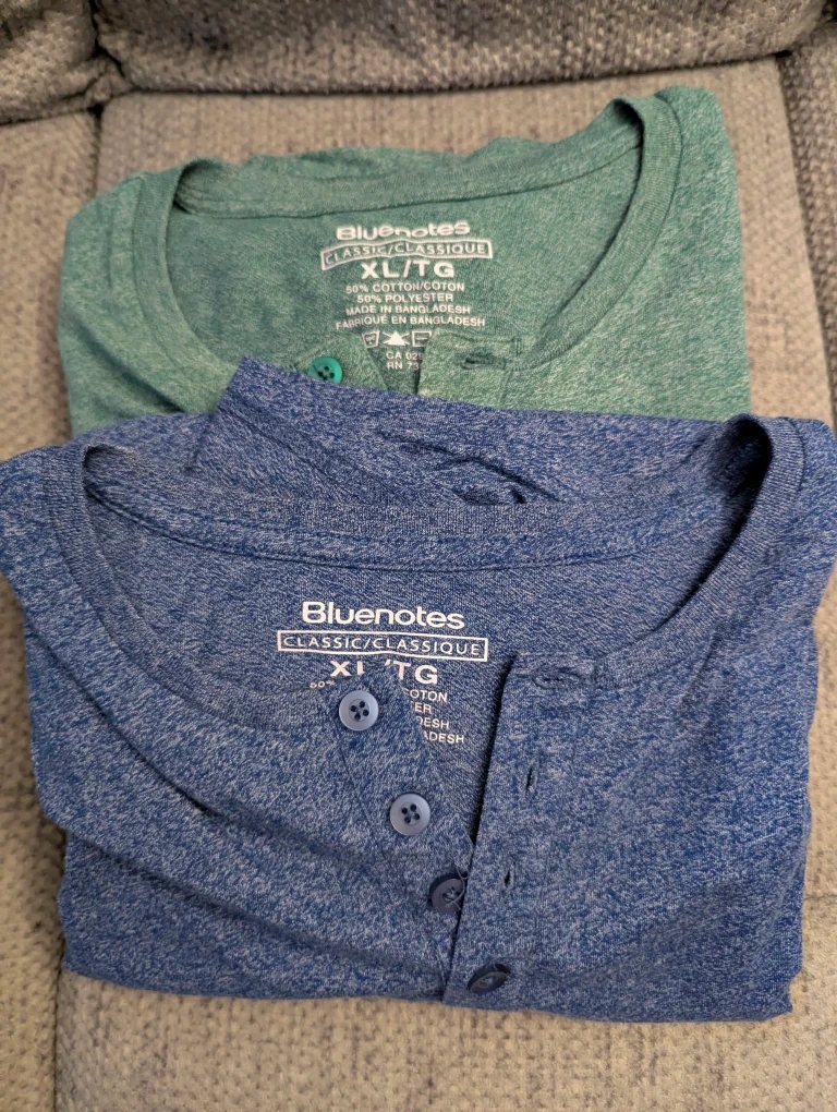 $10 for Two Bluenotes Henley Shirts - Men's XL
