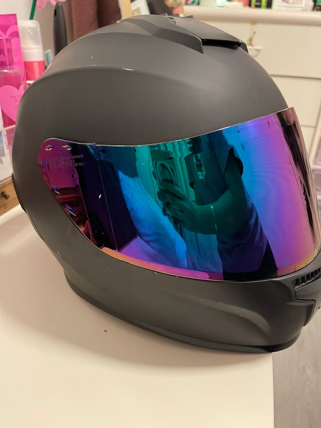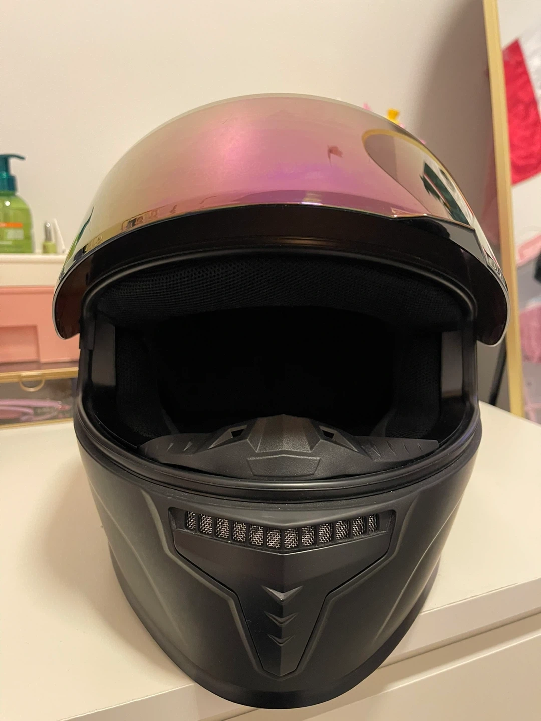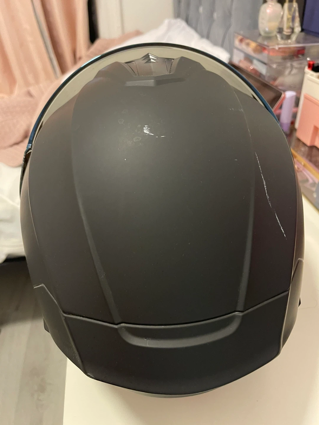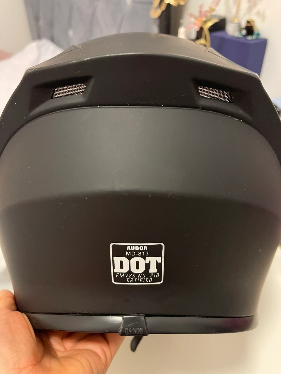 Selling an Auboa MD-813 motorcycle helmet in black. It has a DOT certification. There are some scratches on the back, as shown in the pictures.
