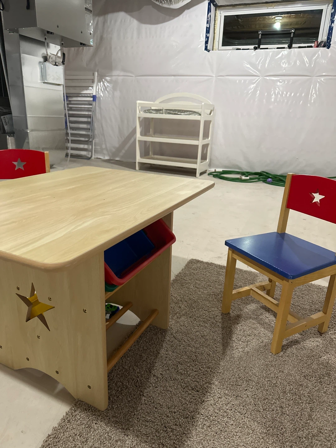 Selling a cute kids' table and chairs set! It comes with colourful storage bins that fit neatly under the table. Perfect for playtime, crafts, or snack time for your little ones