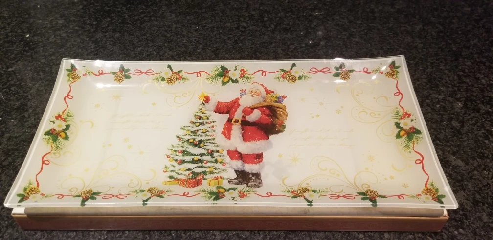 Here's a beautiful Easy Life Magic Christmas glass tray, brand new and still in its original box! It's 36 x 17 cms, perfect for adding a festive touch to your home decor during the holidays