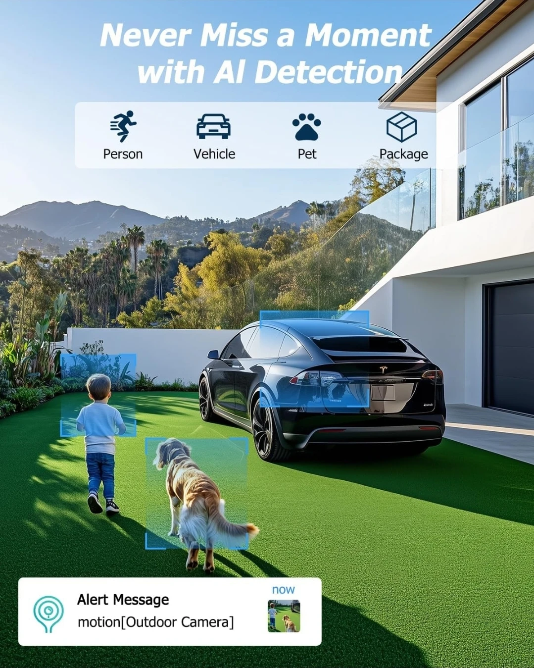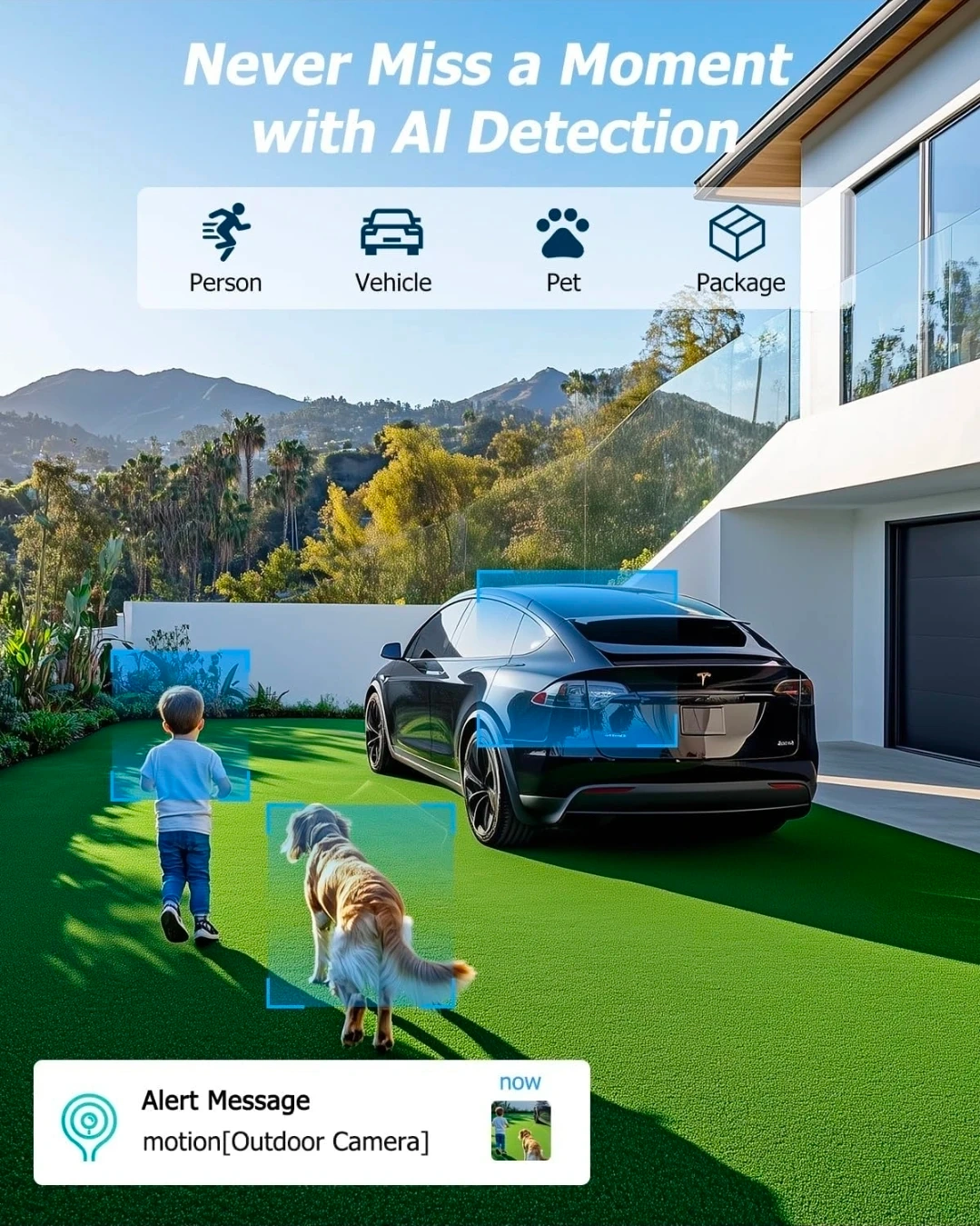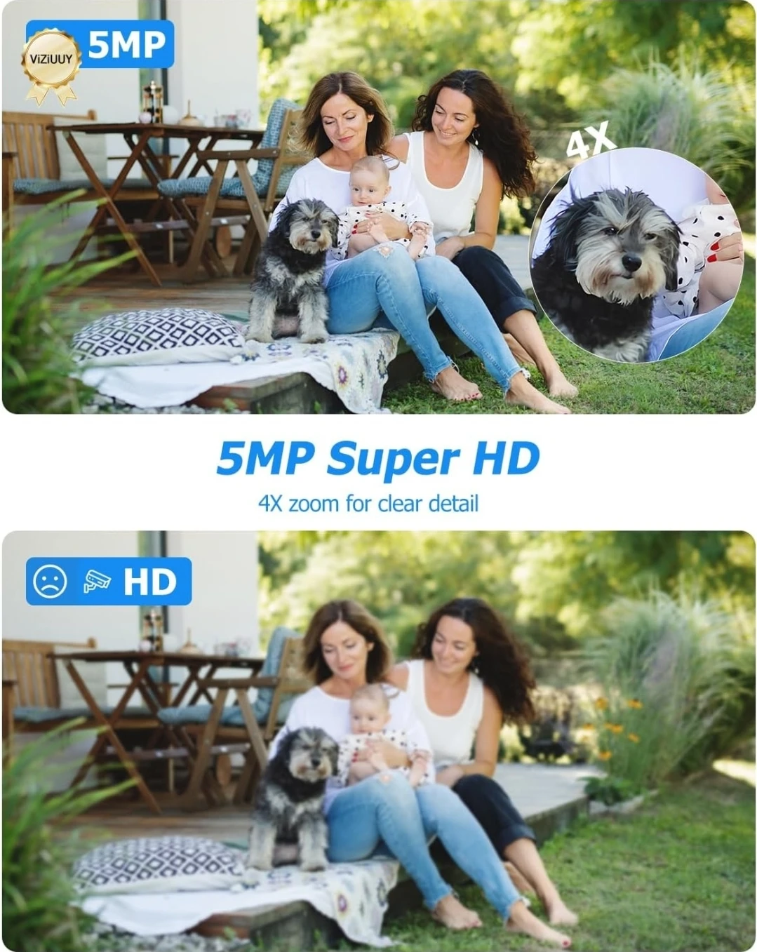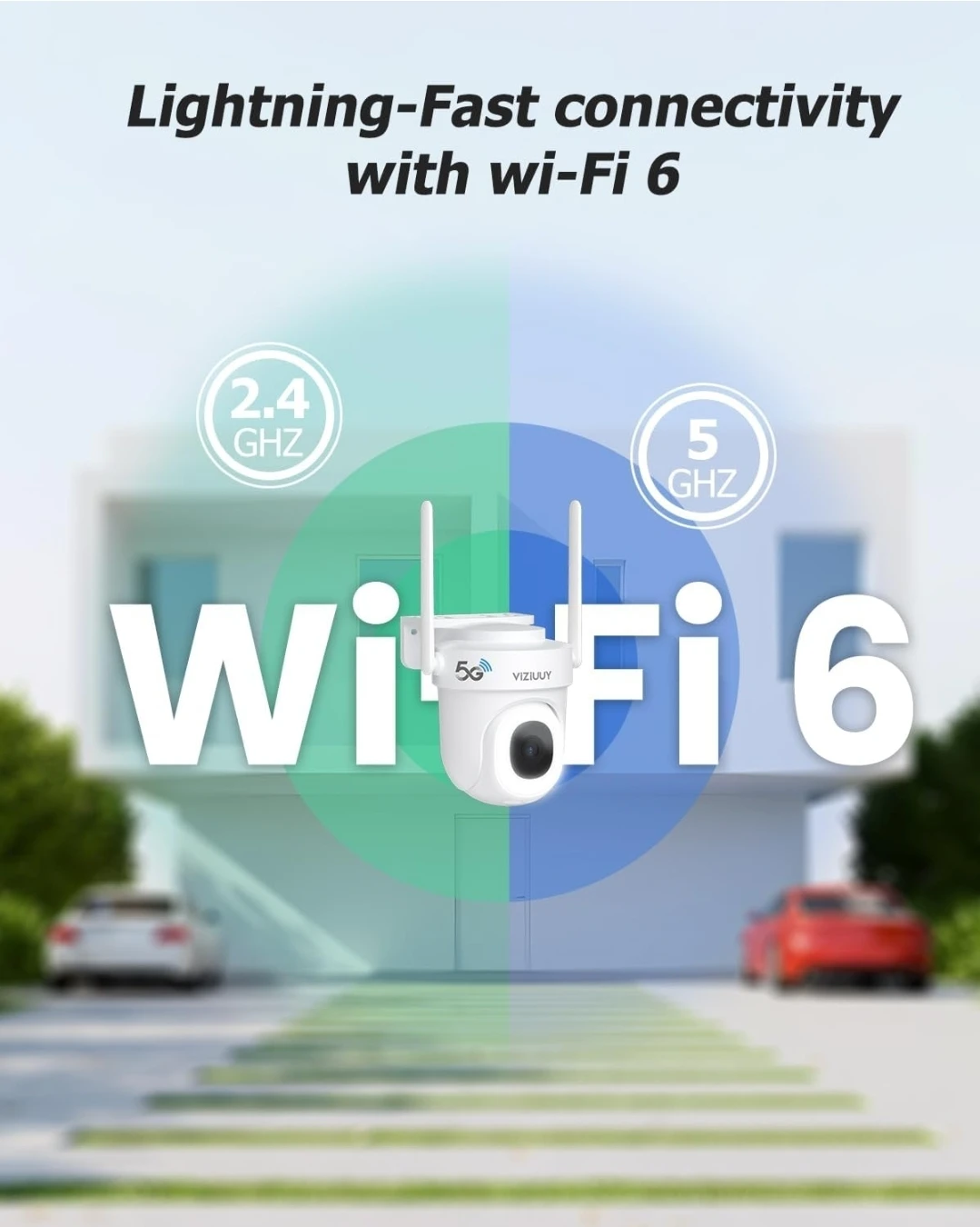 Selling a VIZIUUY 5G WiFi camera with 5MP resolution. It features 4X zoom for clear detail. It uses a micro SD card to record all day, 24/7. It connects with WiFi 6 and has lightning-fast connectivity. The camera has stable electricity and is unaffected by weather