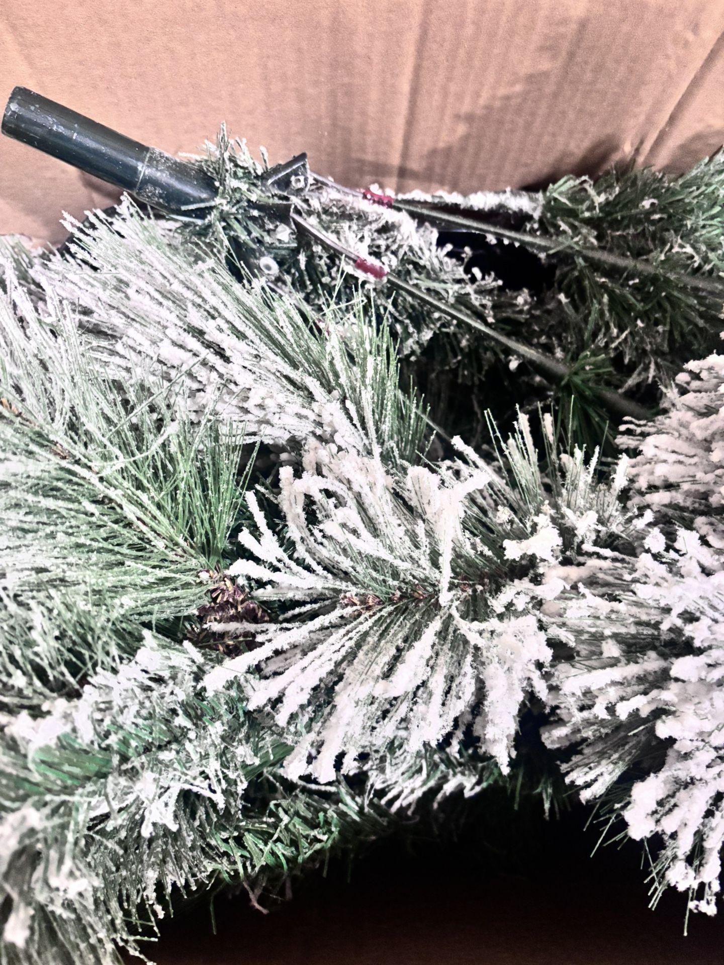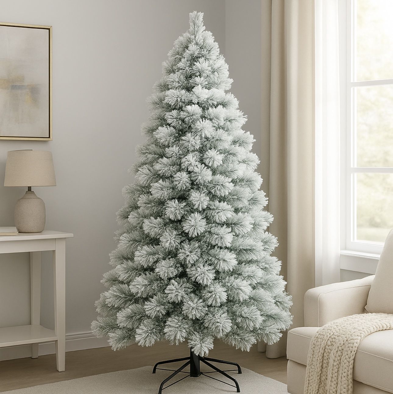 Transform your home for the holidays with this stunning 6-foot Costway flocked Christmas tree. It features lush, full branches with a realistic snowy finish that looks gorgeous with or without decorations.
