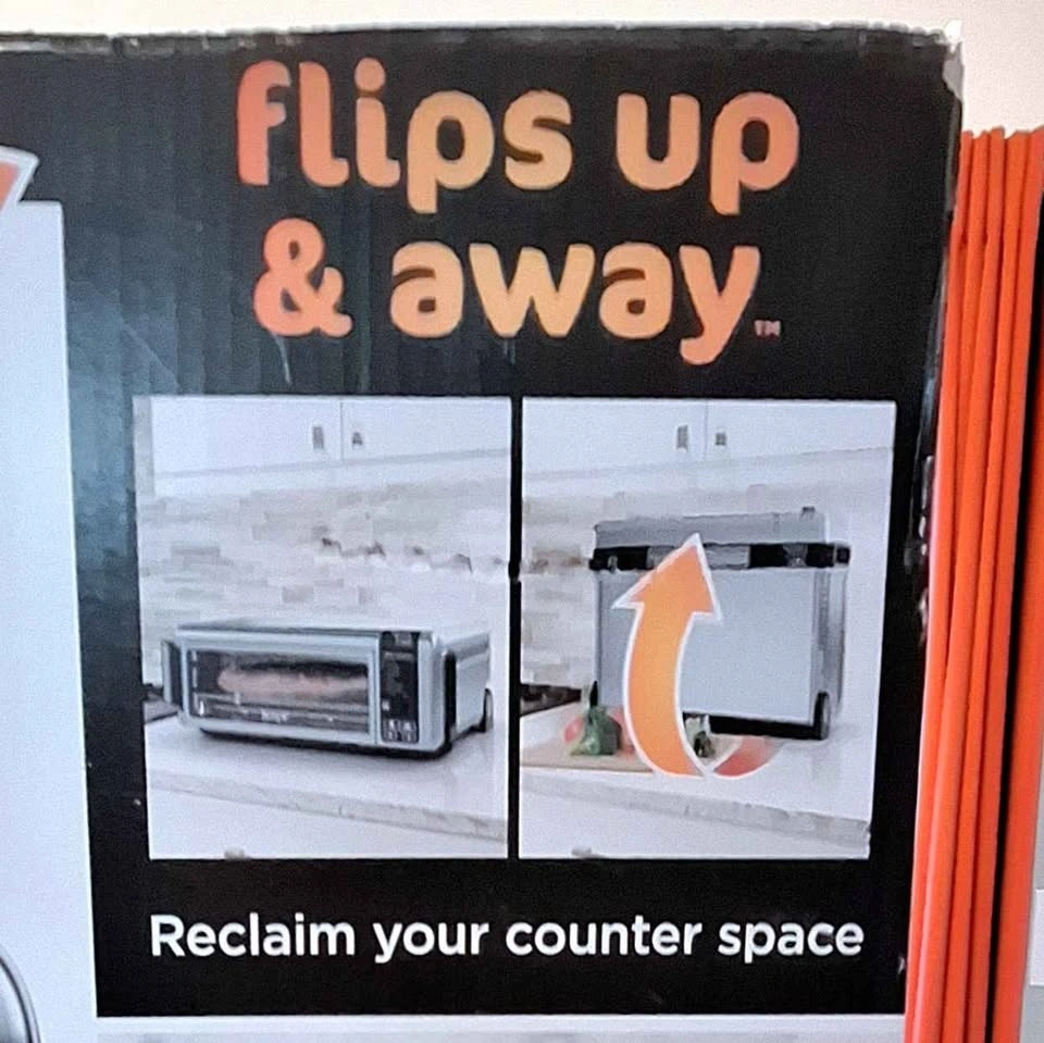 Air Fry, Air Roast, Air Broil, Bake, Bagel, Toast, Dehydrate, and Keep Warm—all in one appliance—and when you’re done cooking, reclaim your counter space by simply flipping the oven up and away to clean and store.