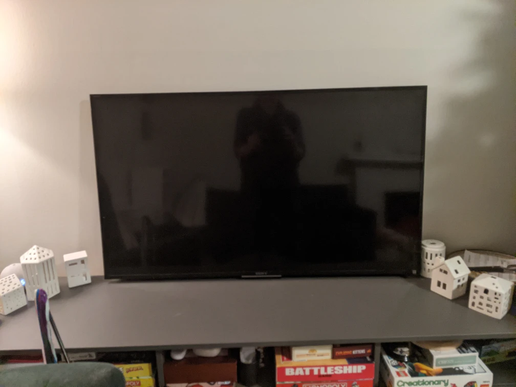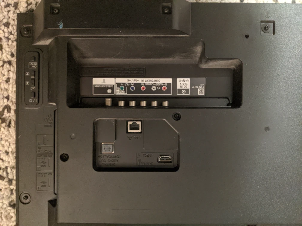 Comes with wall mount - I don't have the stand for it. - power cord, and remote.