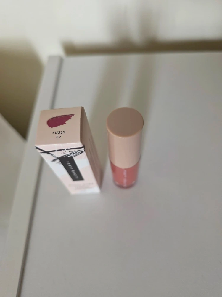 Selling a Fenty Beauty Gloss Bomb Universal Lip Luminizer in the shade Fussy 02. It's a lovely colour and the bottle contains 2ml / 0.07 fl oz. Comes with the original box!
