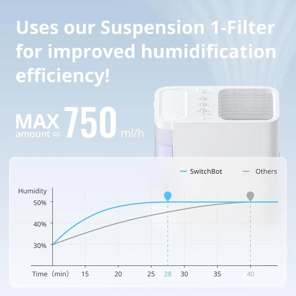 * Consistent Comfort with Natural Evaporation: Enjoy consistent, refreshing humidity every day with the SwitchBot Smart Evaporative Humidifier. Featuring a large 4.5L tank and an advanced evaporative system that delivers up to 750ml/h of moisture, it helps relieve dry skin and sleep discomfort caused by dry indoor air.