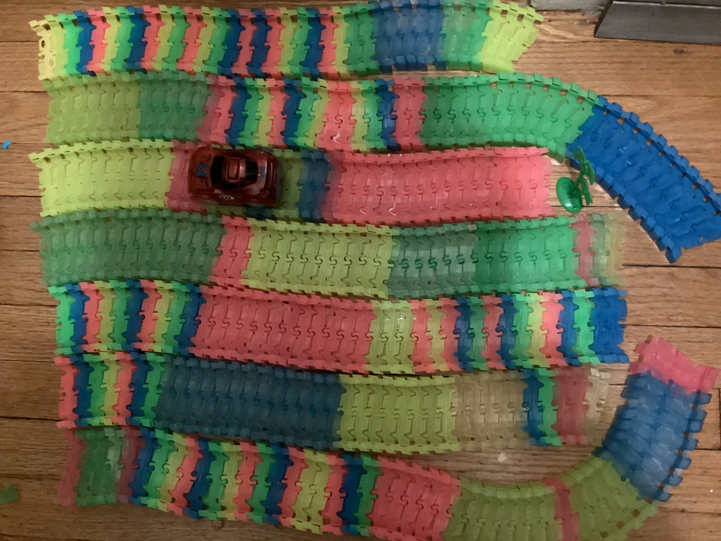 Get ready for some racing fun with this glow tracks car racing set! It includes colorful, flexible tracks that glow in the dark, plus a little race car to zoom around. Perfect for kids who love cars and building things