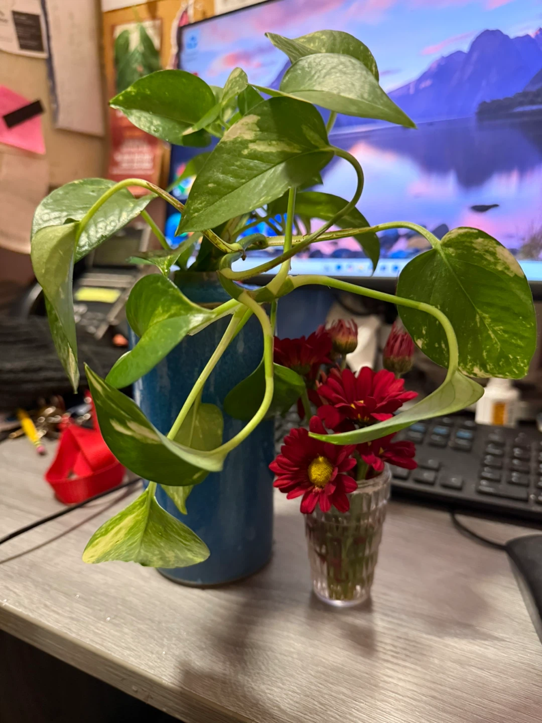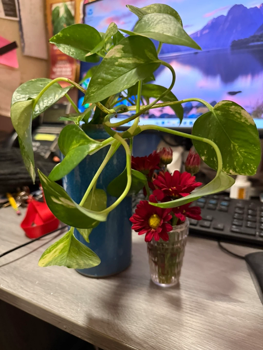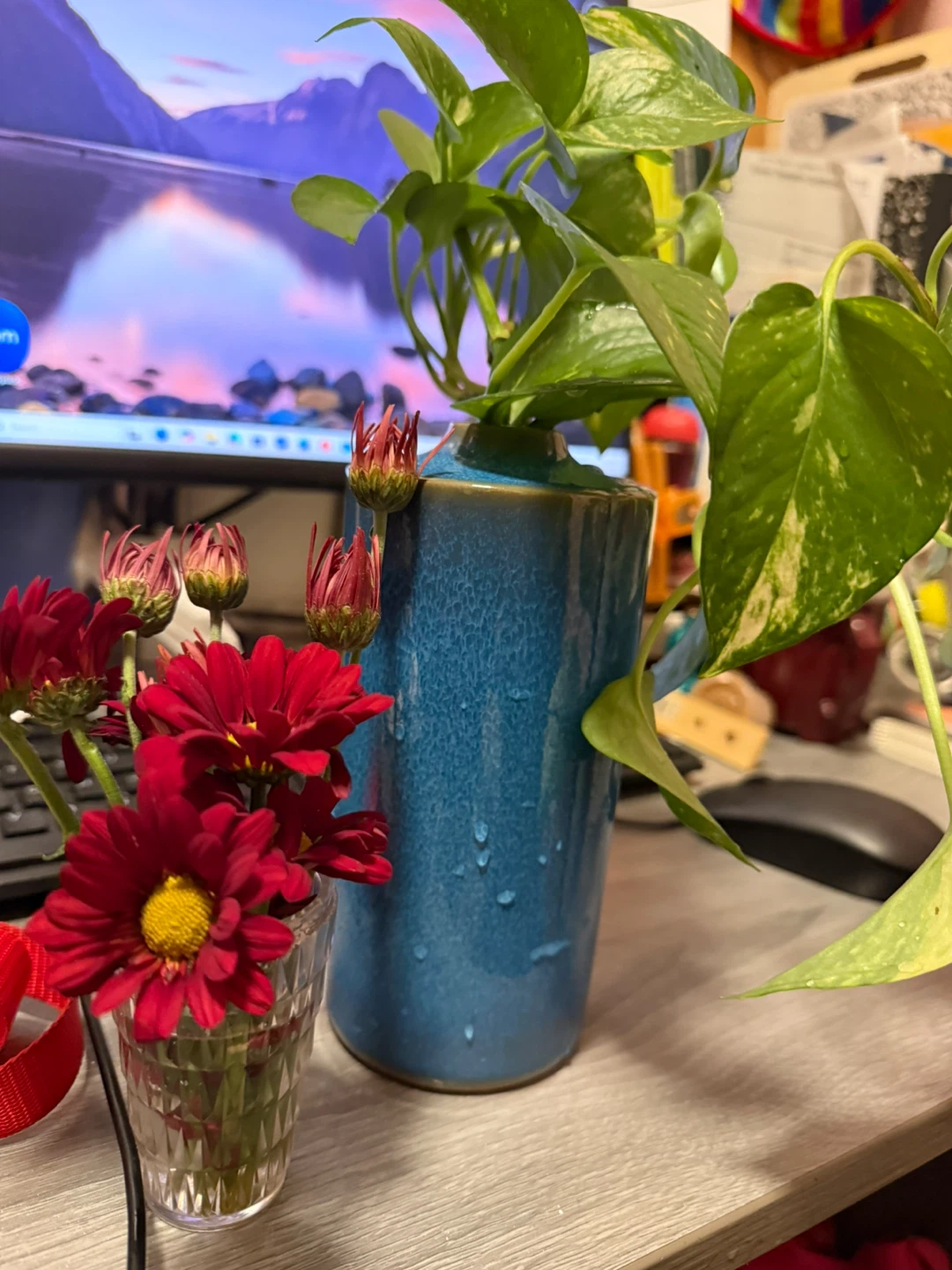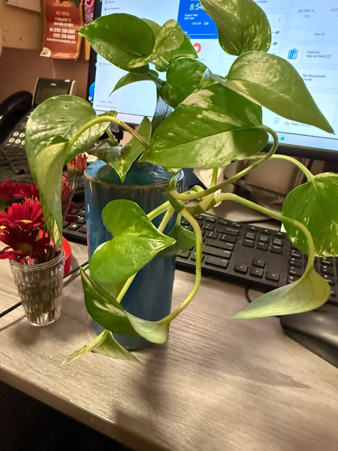 plant in a blue ceramic pot. It's a vibrant addition to any home or office space and super easy to care for. The plant is healthy and thriving, ready to bring some greenery to your space!