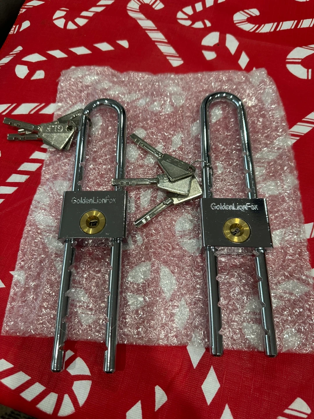 Selling a pair of Golden Lion Fox U-locks, each with its own set of keys! They appear to be in new condition. Perfect for securing bikes or other valuables