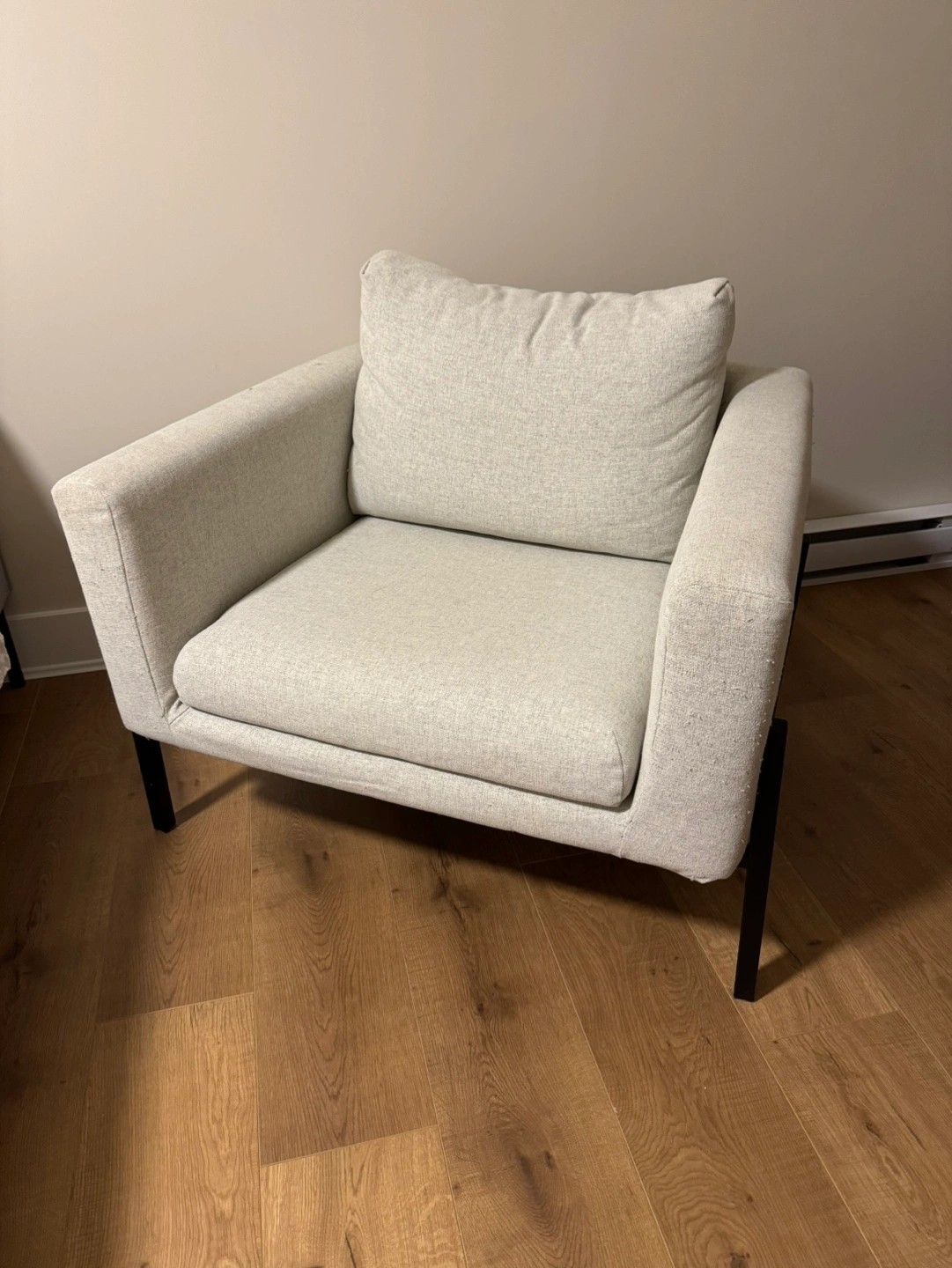 Buy & SellAccent Chair - CreamAccent Chair - Cream$50Accent chair from IKEA. Mild damage to the back left corner (as pictured) but otherwise in good condition!WHERE TO MEETBurnaby HeightsView MapSELLERJourdanBurnaby Heights574 reviews0 chats·0 favorites·30 viewsSEND CHAT TO SELLERHi Jourdan! I’m interested in your listing.Hi Jourdan! I’m interested in your listing.Get the Karrot app to chatSign In to chat