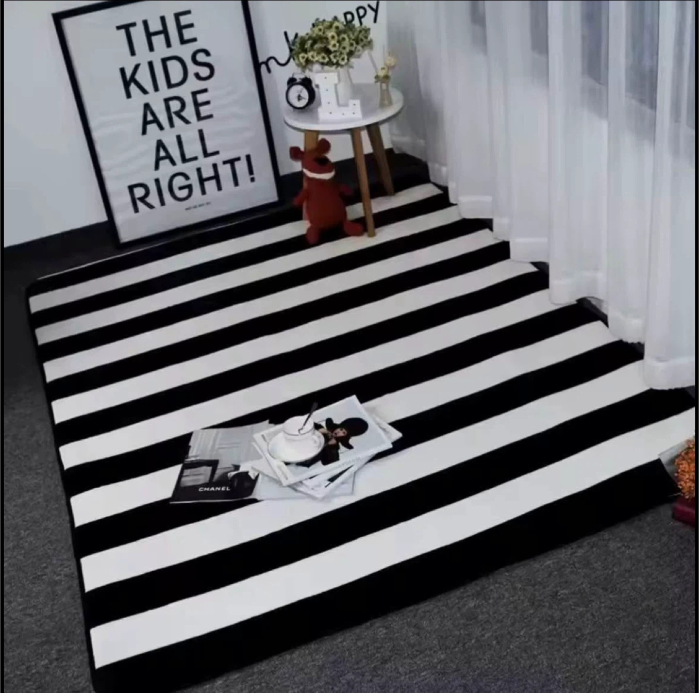 Black and White Striped Rug
