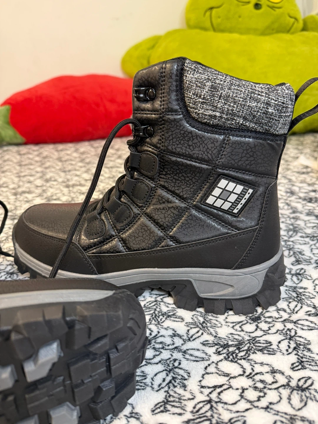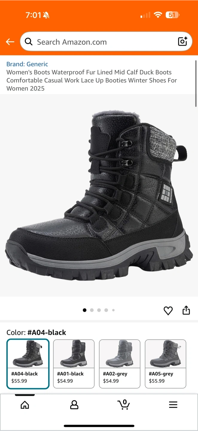 These are women's waterproof fur-lined mid-calf duck boots. They are black and look comfortable for casual wear, work, or winter weather