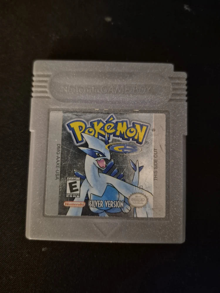 Selling a used Pokémon Silver Version game for the original Nintendo Game Boy. It's in good condition and ready for a new player to enjoy!