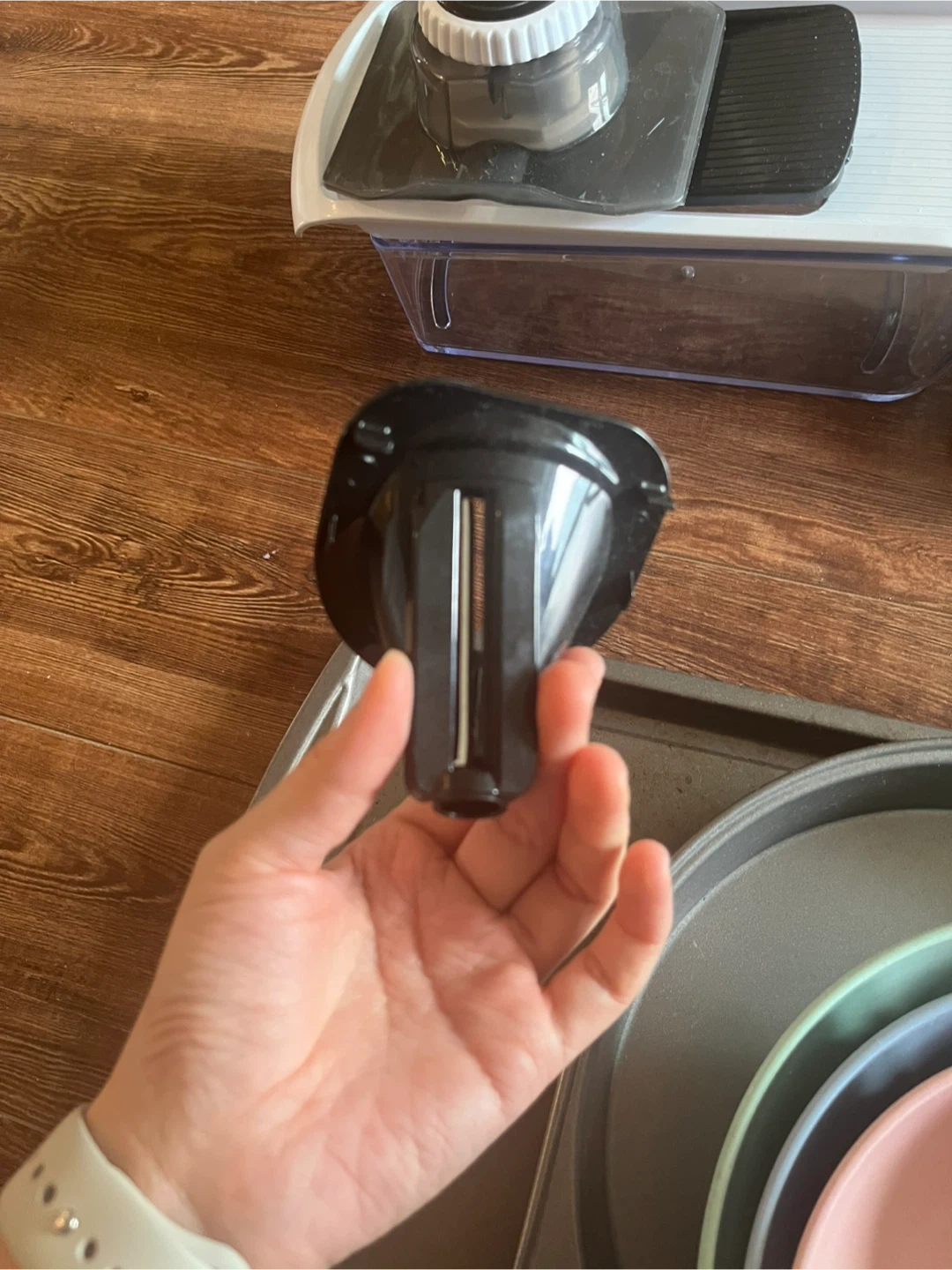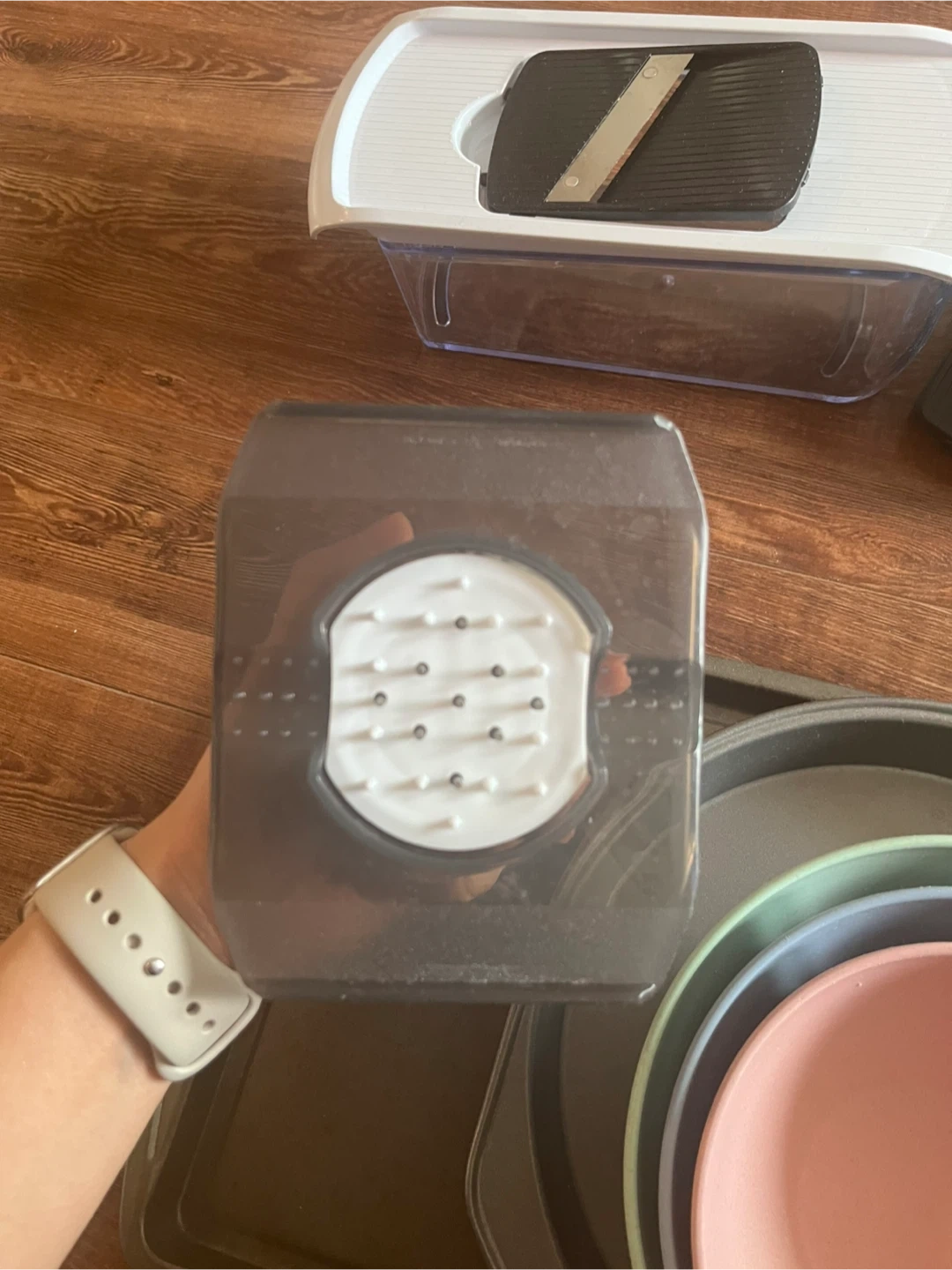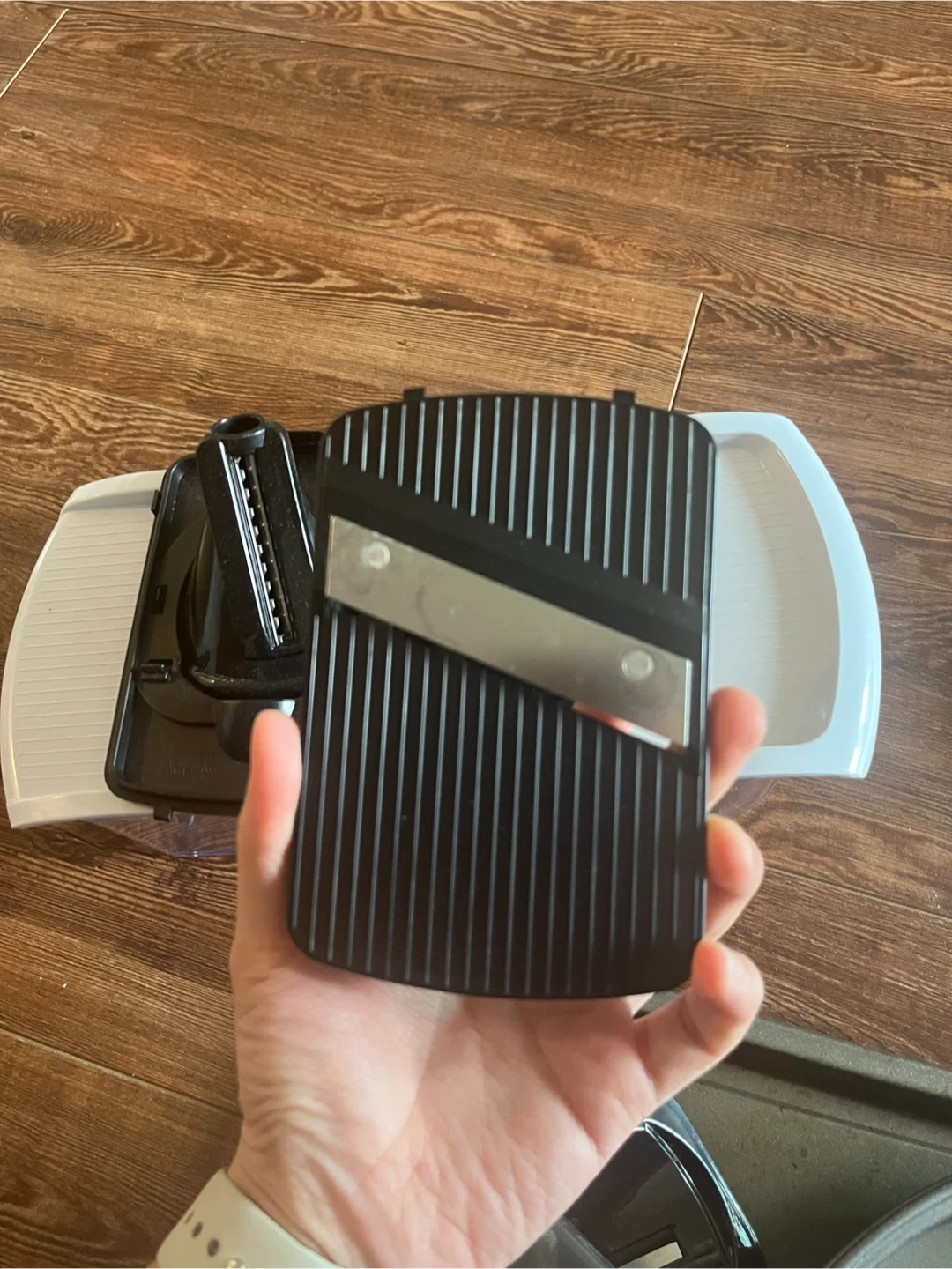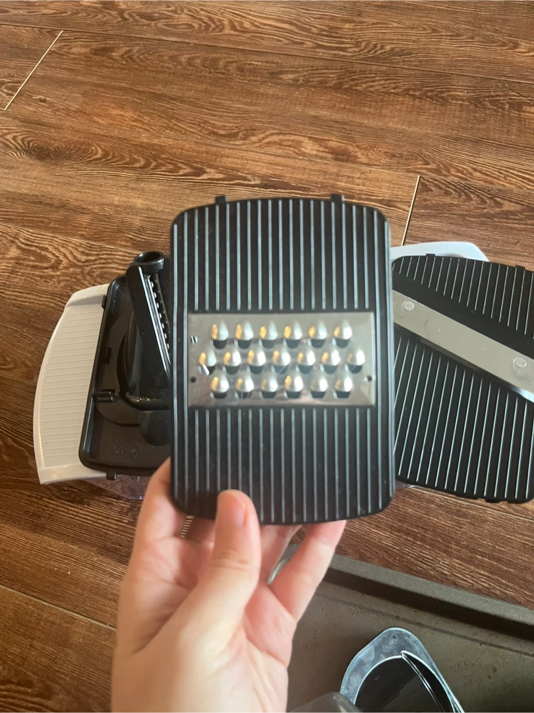 Selling a mandoline slicer. In good condition and comes with multiple blades for different cuts. Great for quickly slicing vegetables!