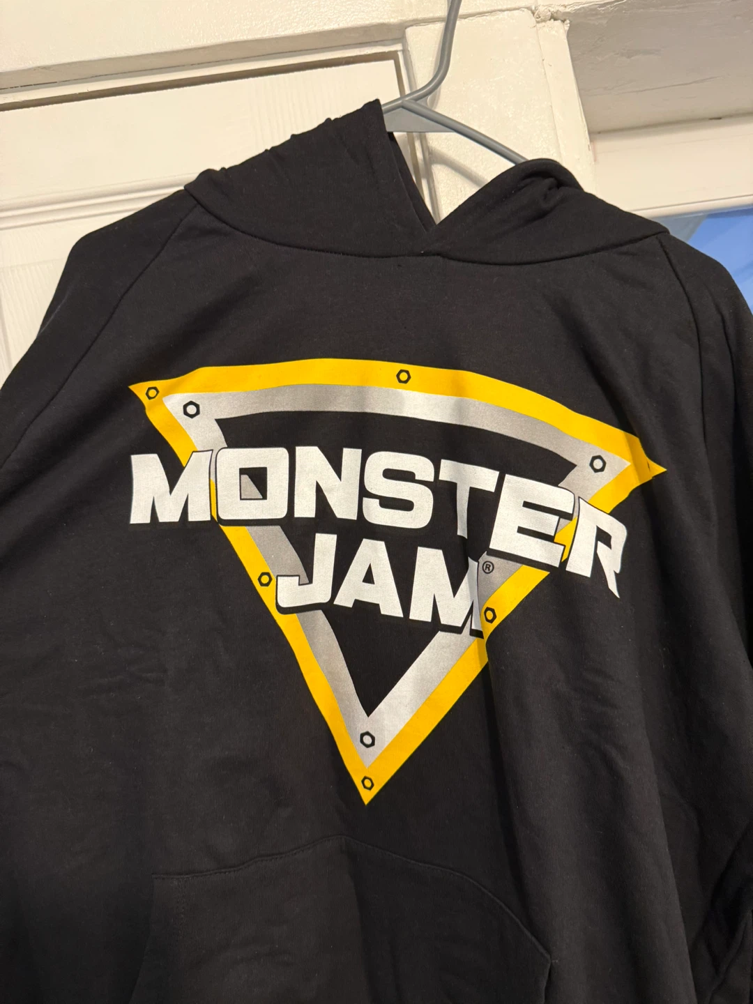 Selling a black Monster Jam pullover hoodie. It's in great condition and features the Monster Jam logo on the front. Perfect for any Monster Jam fan!