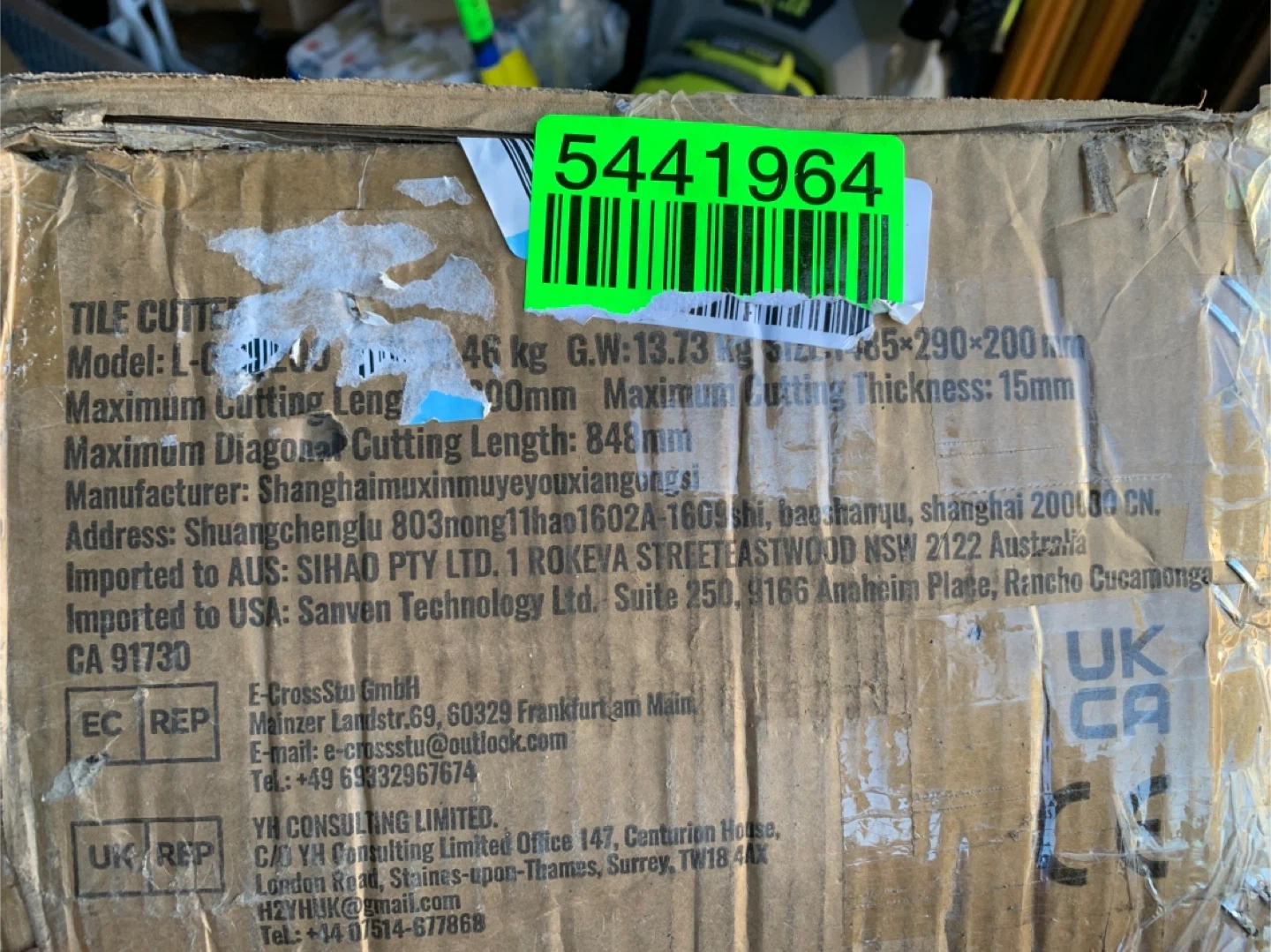 Selling a VEVOR 48 Inch Manual Tile Cutter. This tile cutter comes with single rail & double brackets and a 3/5 in cap with a precise laser guide. It's designed for cutting porcelain tiles. The maximum cutting length is 1200mm, and the maximum cutting thickness is 15mm. The maximum diagonal cutting length is 848mm.