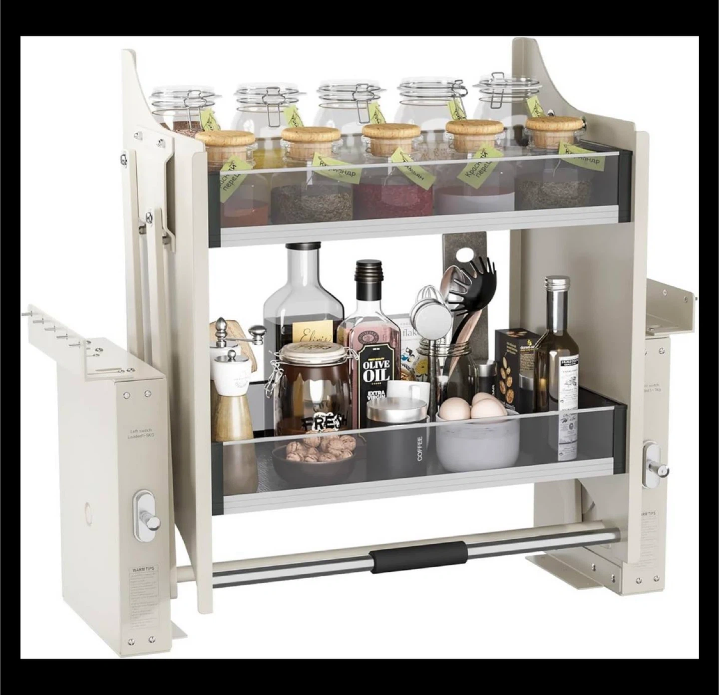 I'm selling a white pull-down shelf for the kitchen, perfect for organizing your essentials! It measures 22 inches in width and is designed to make accessing items easier. It's in new condition and ready to be installed in your kitchen