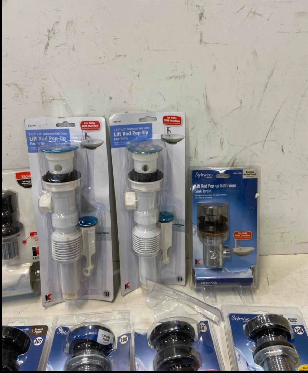 I'm selling a new bathroom sink drain lift rod pop-up. It's perfect for sinks with overflow. This is a 1-1/4" x 12" bathroom sink drain that's flexible to fit. I have several available! 20 pieces