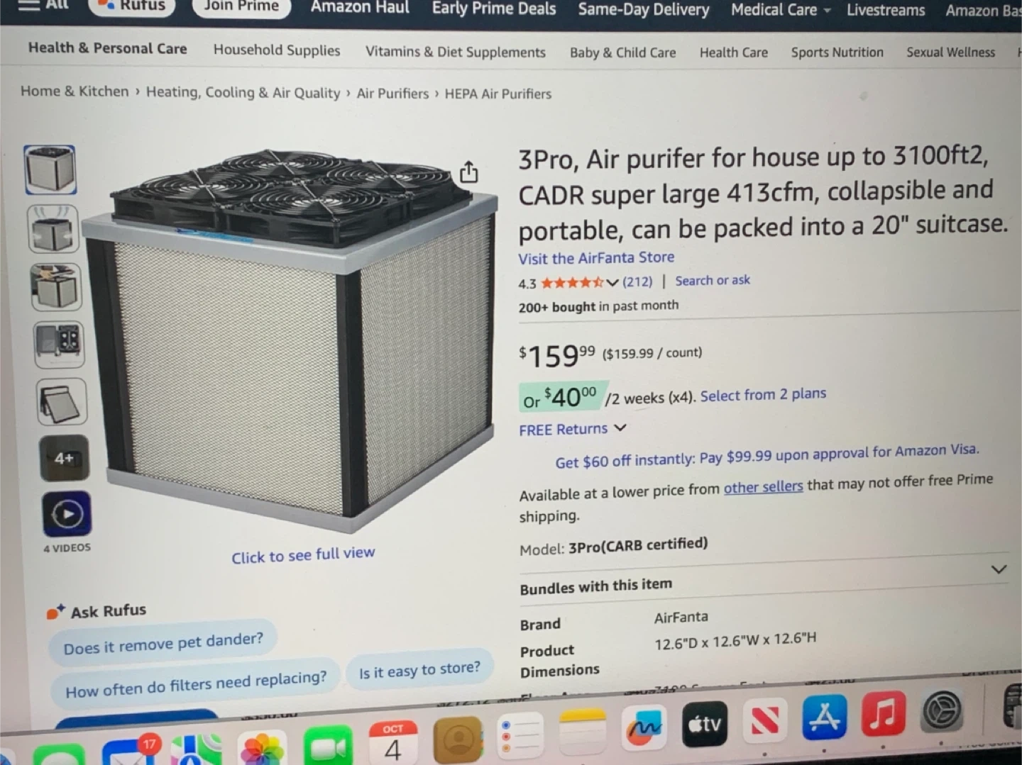 Selling an AirFanta 3Pro air purifier, perfect for a house up to 3100ft². It features a CADR super large 413cfm and is collapsible and portable, so it can be packed into a 20" suitcase.