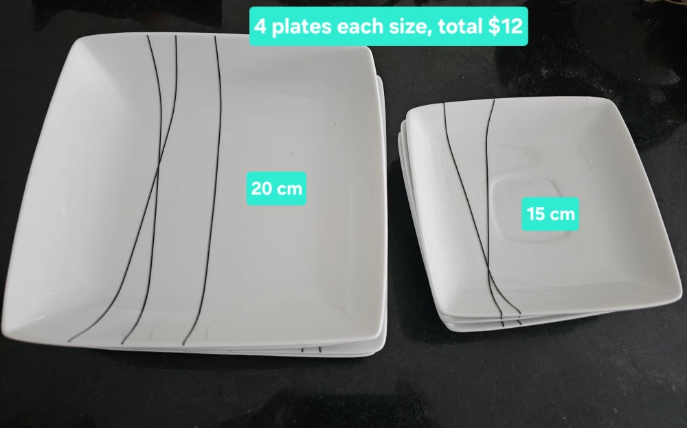 Selling a set of square white plates!