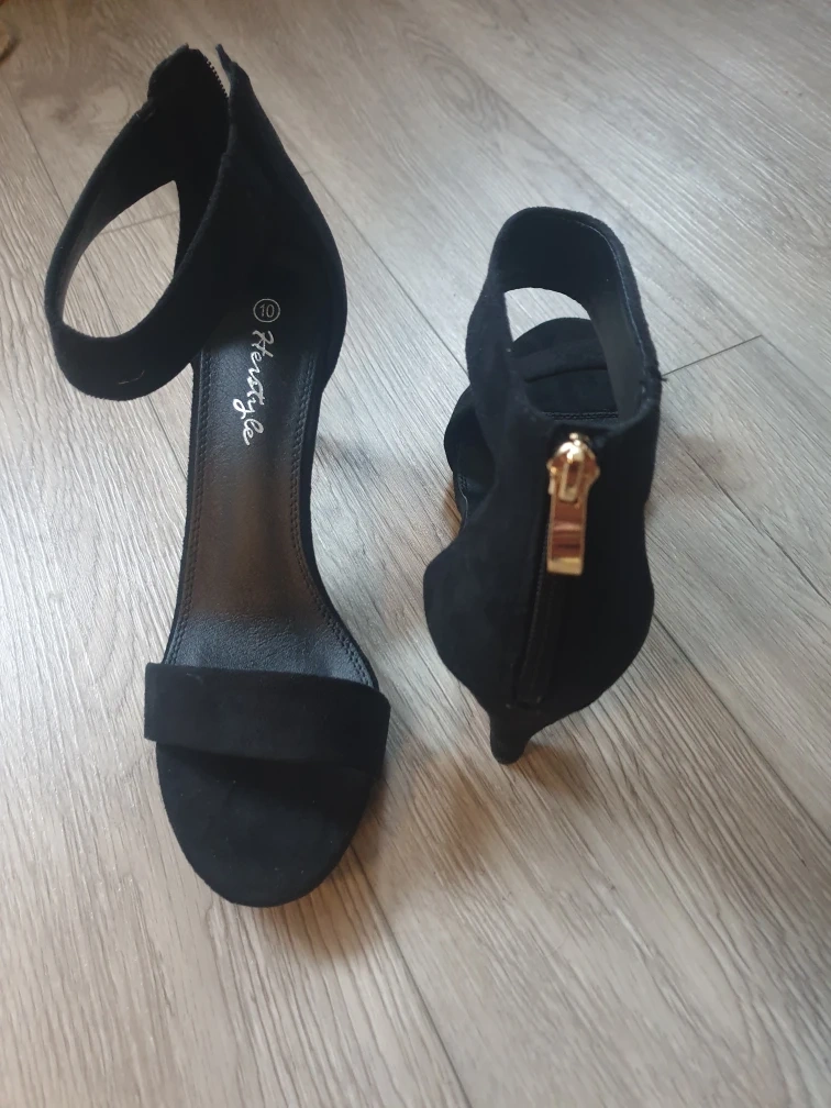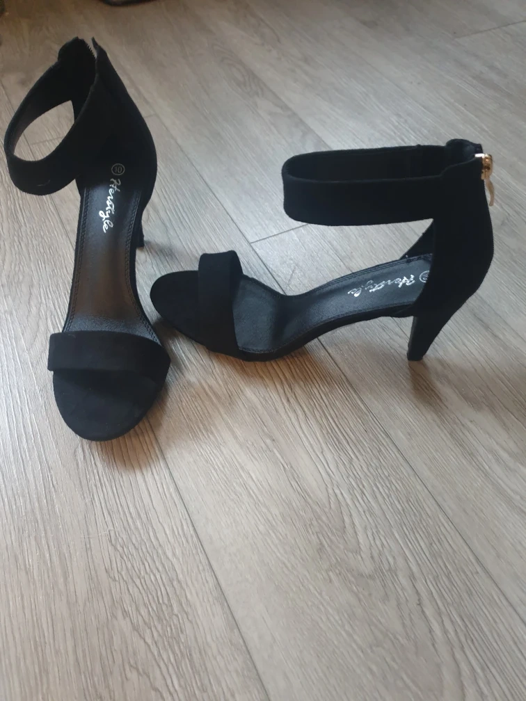 Selling a pair of Herstyle black heels in size 10. They feature a stylish ankle strap and a sleek design. Perfect for dressing up any outfit! Brand new, heel height is 3 inches.