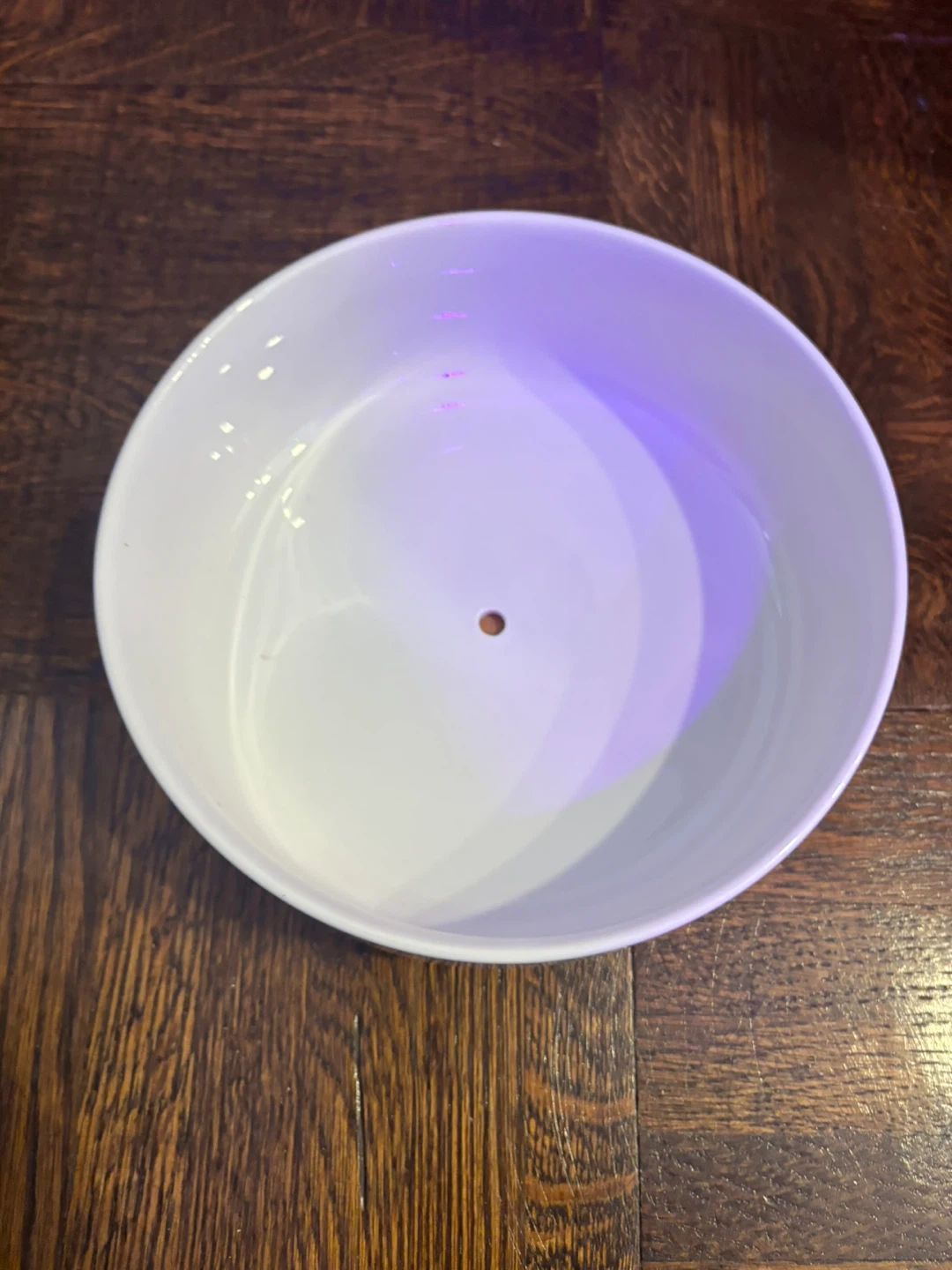 FREE simple and stylish white ceramic plant pot, perfect for adding a touch of greenery to your home. It comes with a lovely bamboo tray to catch any excess water. It's in great condition and ready to house your favourite plant!