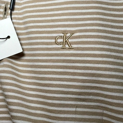 Brand new with tags. Regular fit: relaxed through arms, comfortable fit around body. Fine horizontal stripes in tan and white. The first five pictures are of the actual product. This is only for the tan and white striped golf shirt. The grey and white one is for you to see the fit. Material: 100% cotton. Made in Sri Lanka. Excellent condition comes from a pet free smoke free home.