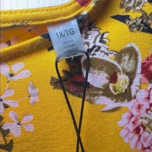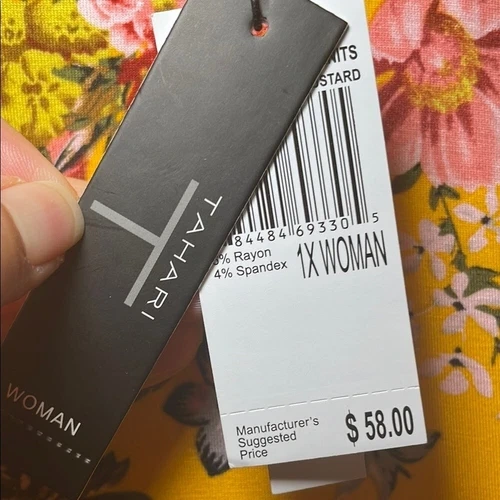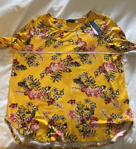 Tahari yellow with red and pink floral print 1X
