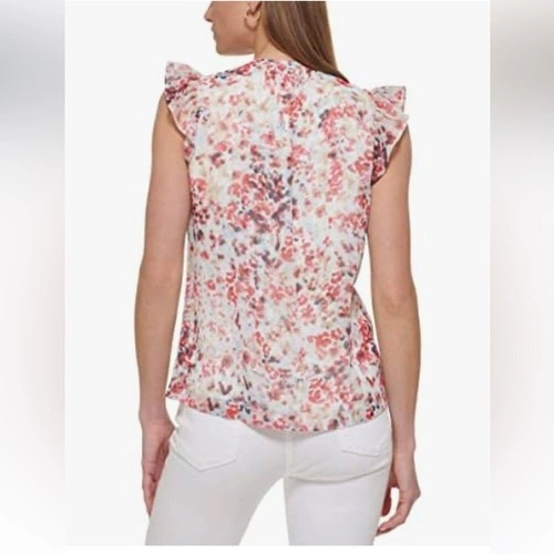 DKNY Women's Ruffled Cap Sleeve Top sz L