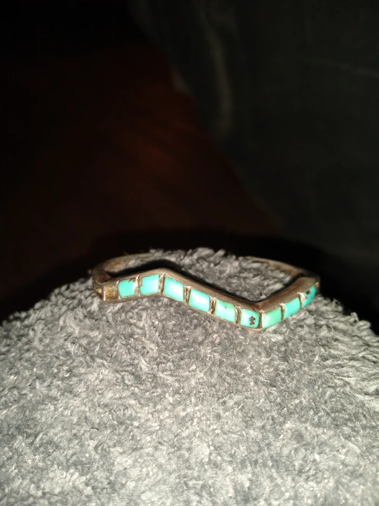 This is a great piece of vintage native American Zuni Indian handmade silver and turquoise bracelet. It is sold at auction for price as well over 1500. This is a great statement piece to add to any wardrobe and makes any outfit feel a hundred times more special.