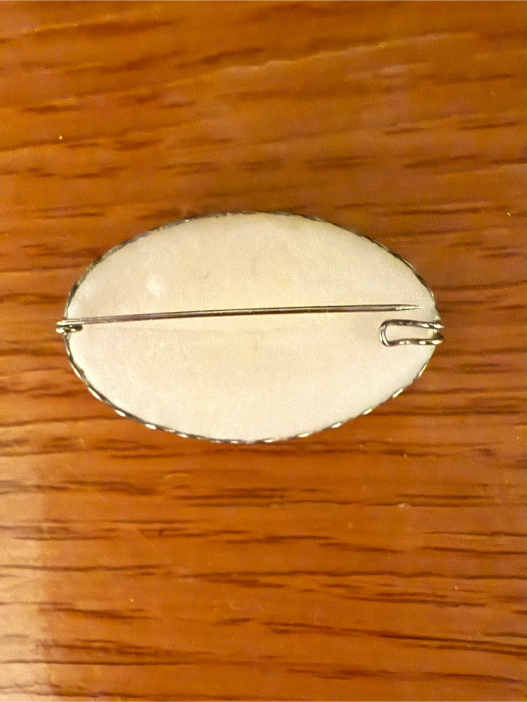Selling a vintage orange fruit pin brooch. It's in great condition and has a cute design with little oranges and leaves. Perfect for adding a touch of vintage charm to your outfit!