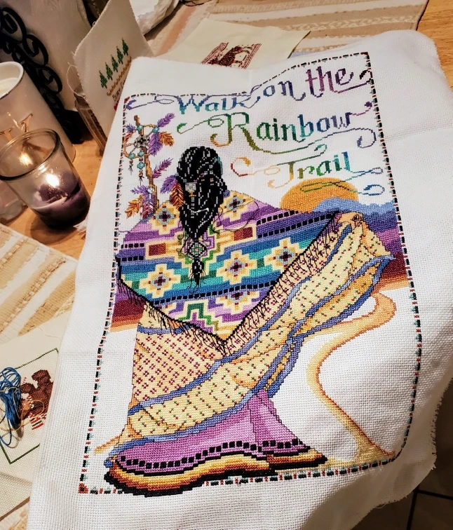 Framed Cross Stitch Art - Rainbow Trail