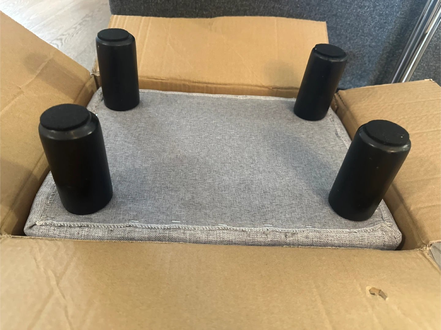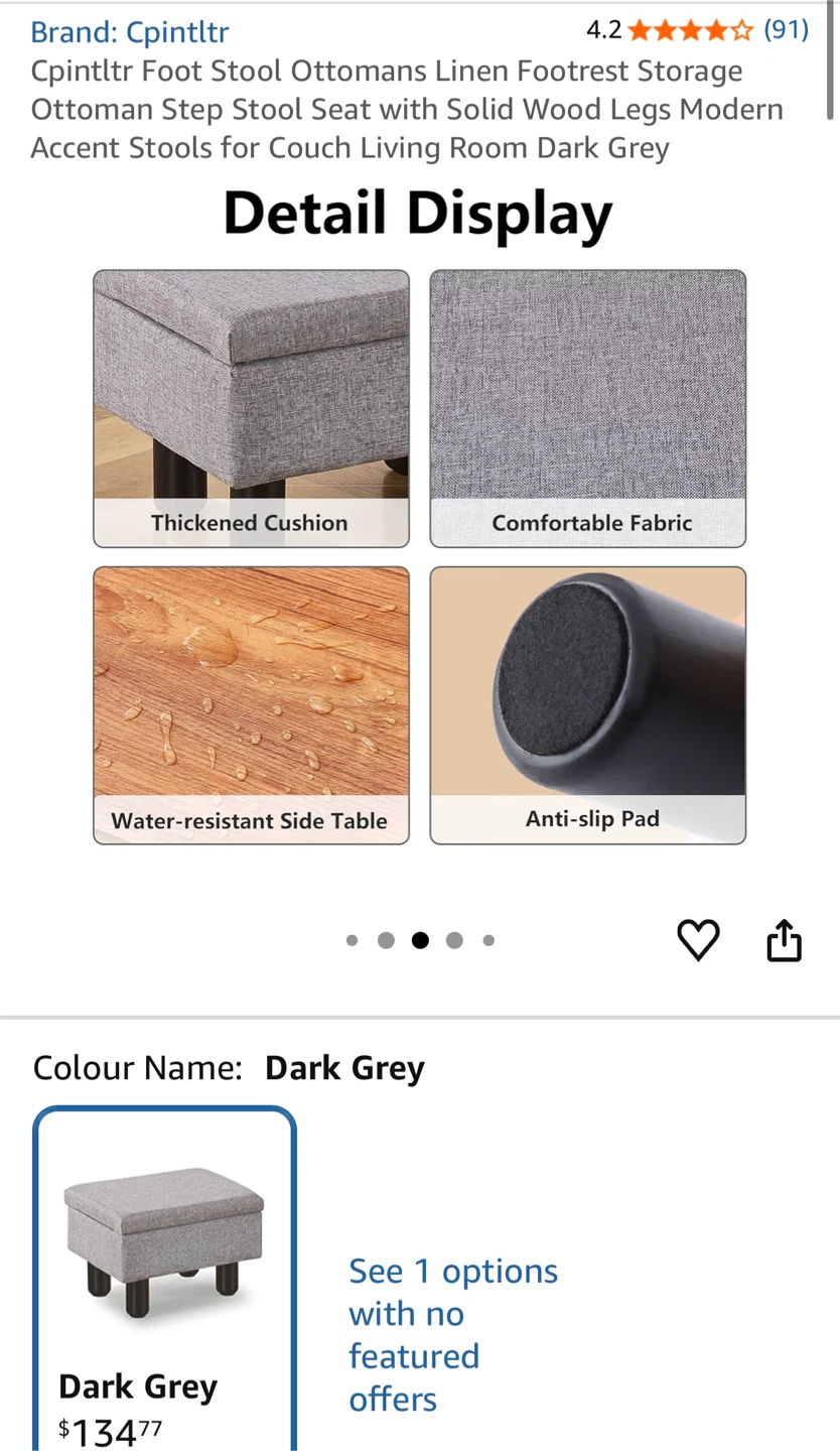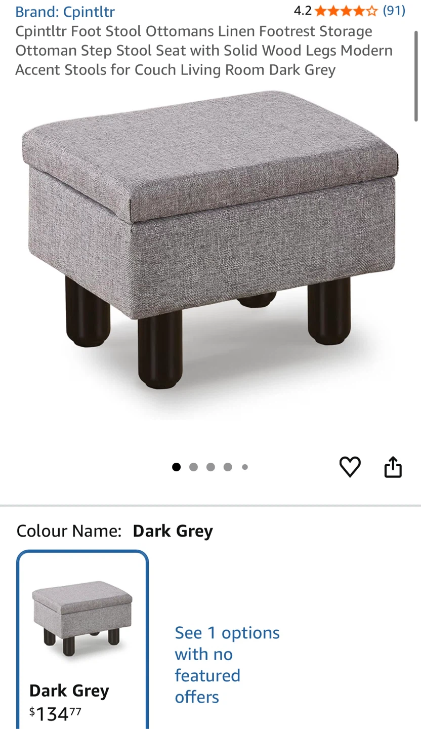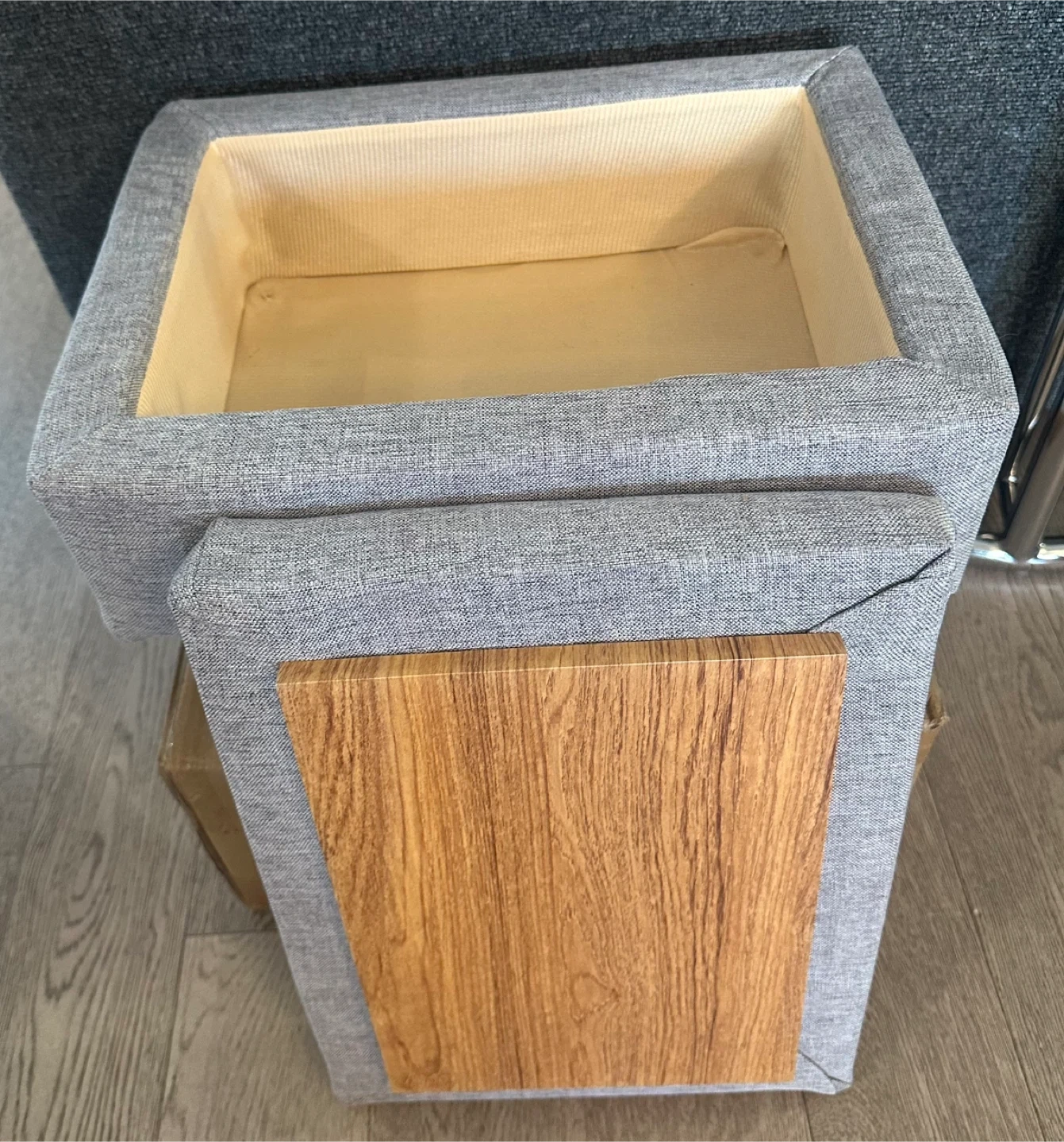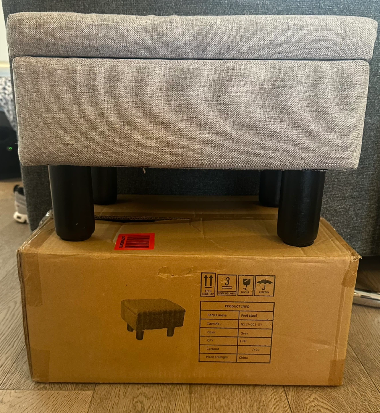 It features a linen footrest and storage ottoman step stool seat with solid wood legs. It's a modern accent stool perfect for your couch or living room. New with some slight paint chip on leg stands and interior storage has two small holes hence the discounted price. Originally $135.00