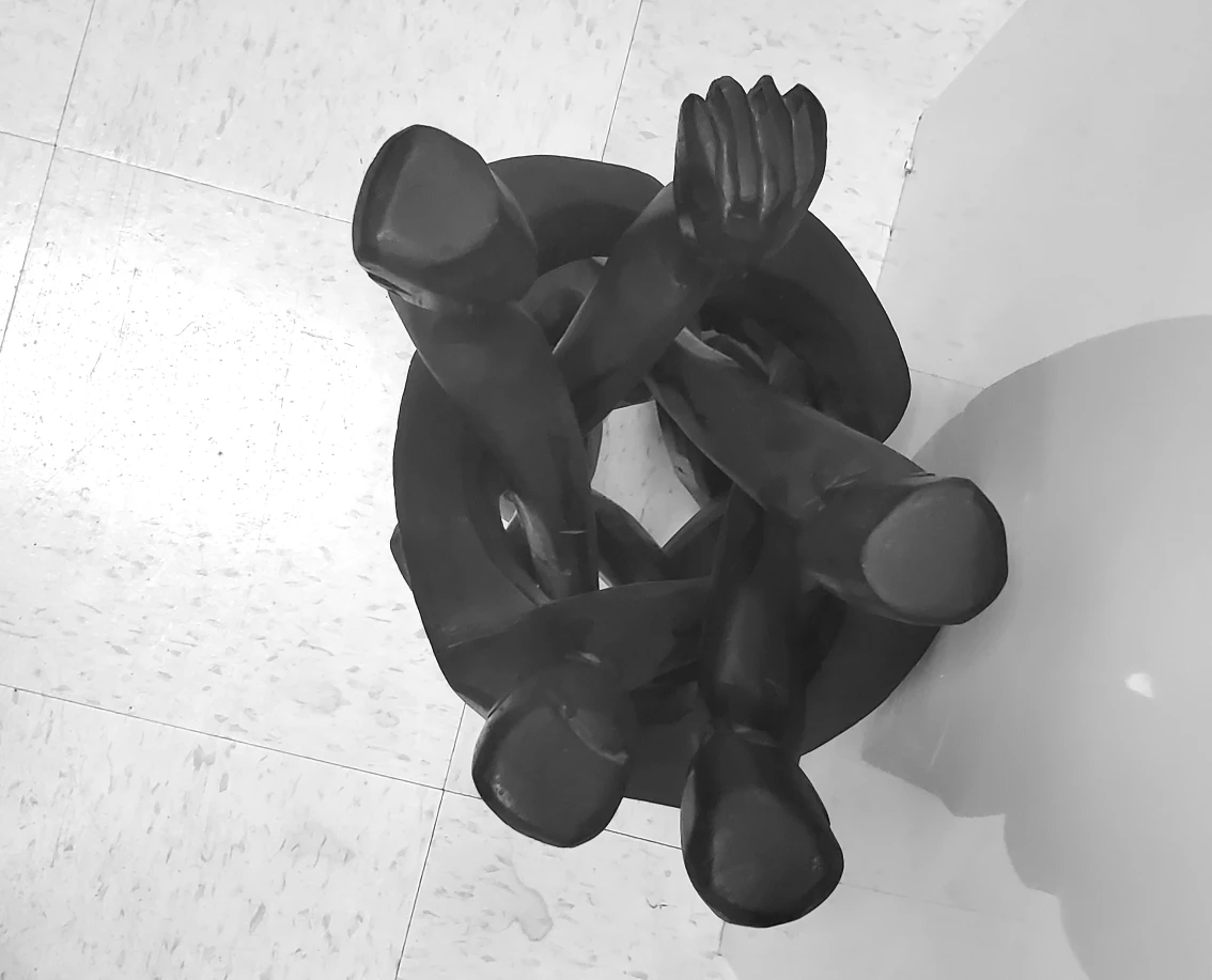 Sculptural Accent Art Unity circle of men - Black Wood