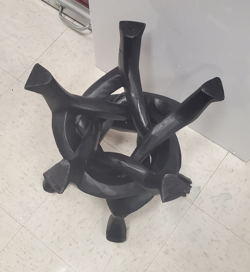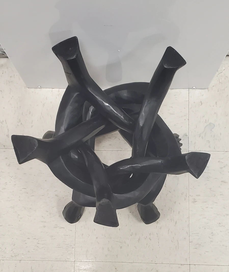 Unique Unity sculptural accent made of one piece of black wood. Hand-carved African art--- vintage.