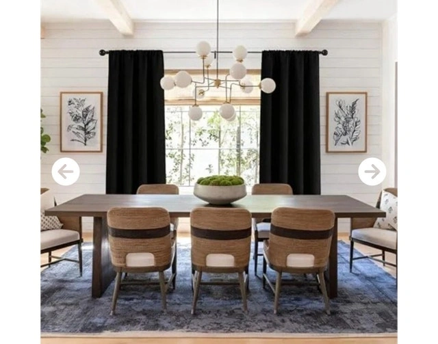 Upgrade your living space with this set of IGEMAEVE black blackout curtains, each panel measuring 84 inches in length, designed to darken your bedroom or living room while saving energy, condition is new. Key Features: - Brand: IGEMAEVE - Colour: Black - Length: 84 inches - Type: Blackout - Quantity: 2 panels And remember, if the ad's up, the curtains are available!