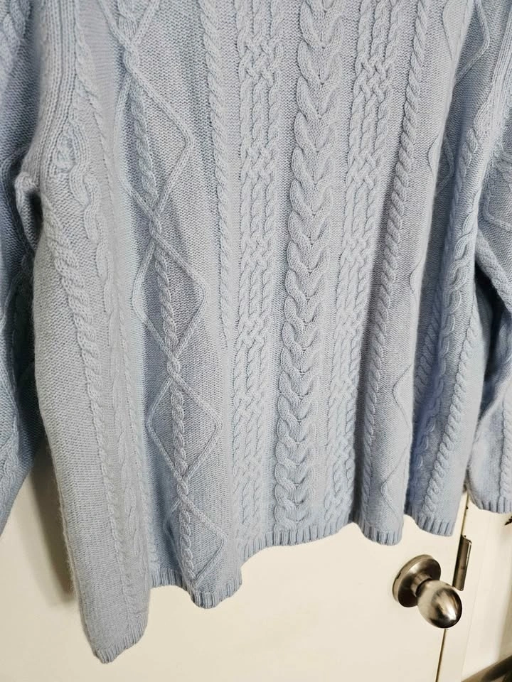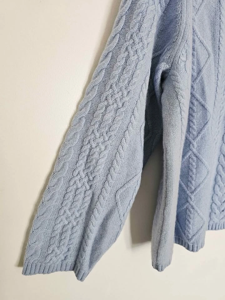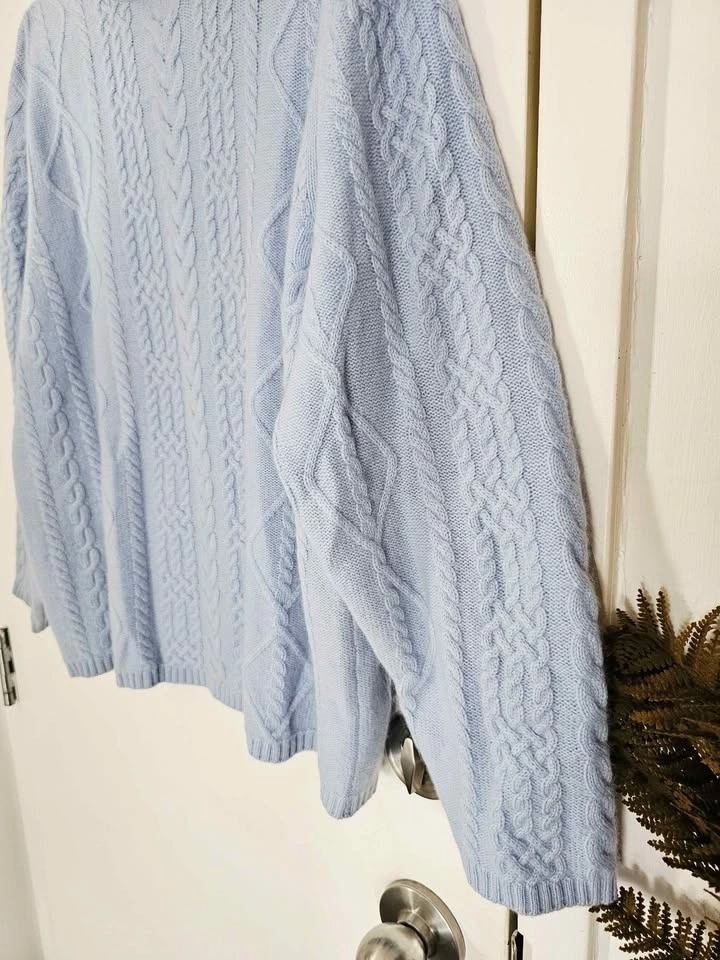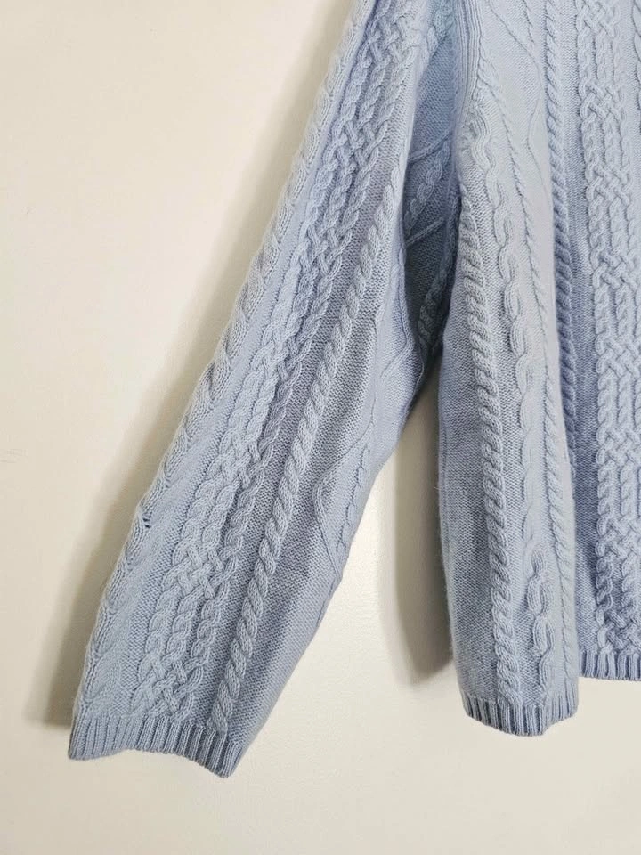Size 1X 100% Cashmere New Cable Knit Light Blue Sweater