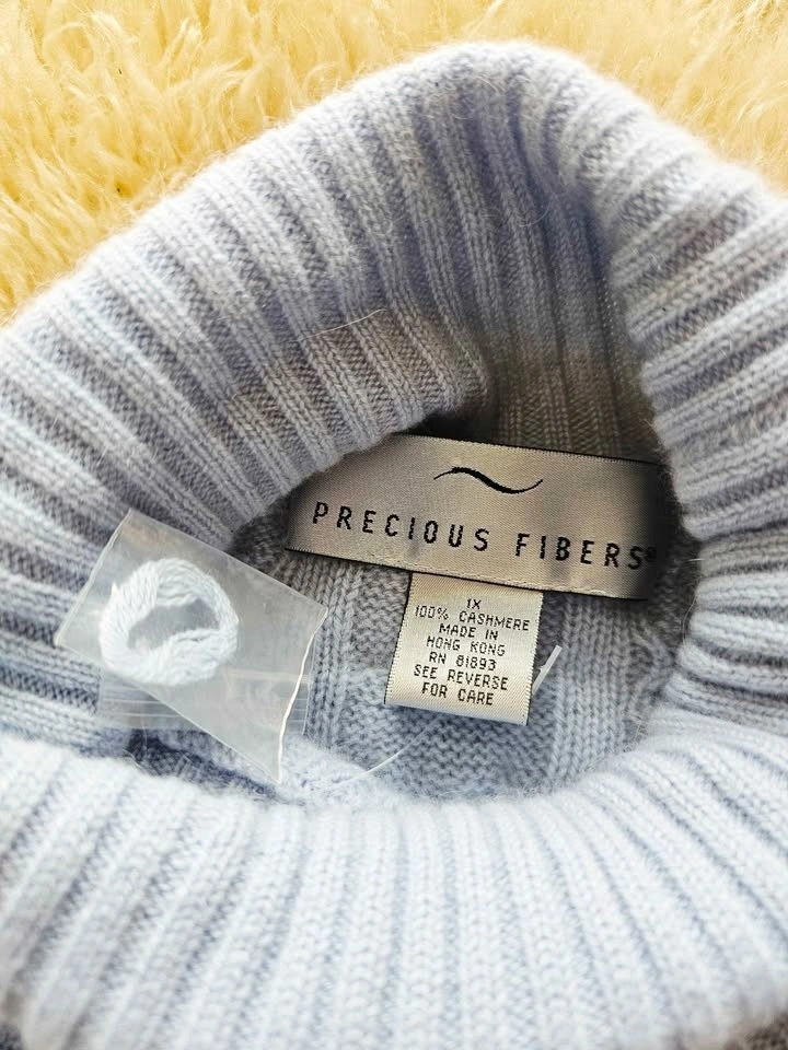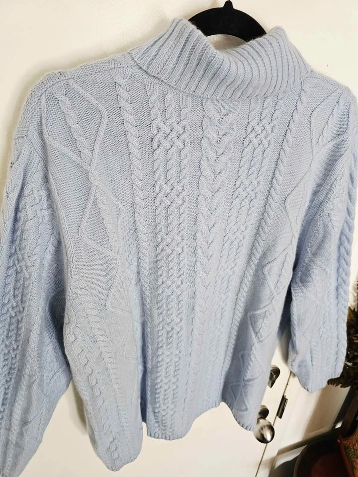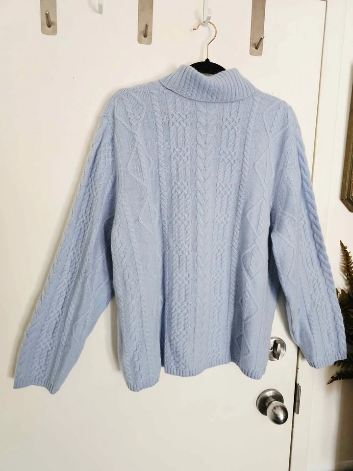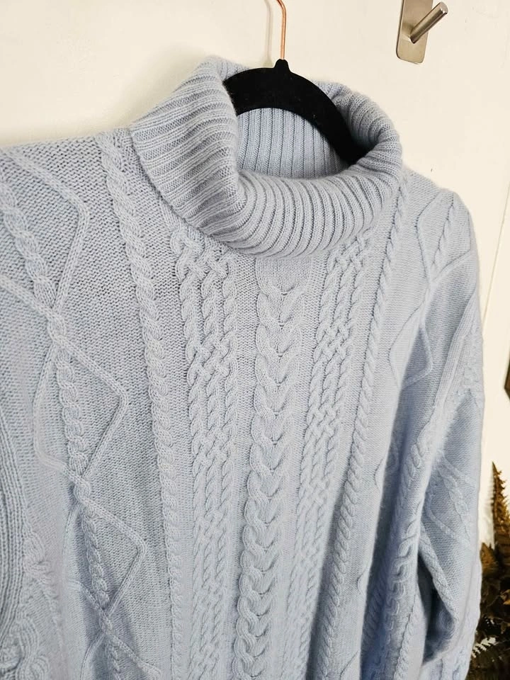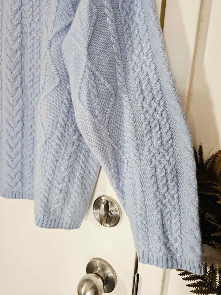Size 1X 100% Cashmere New Cable Knit Light Blue Sweater