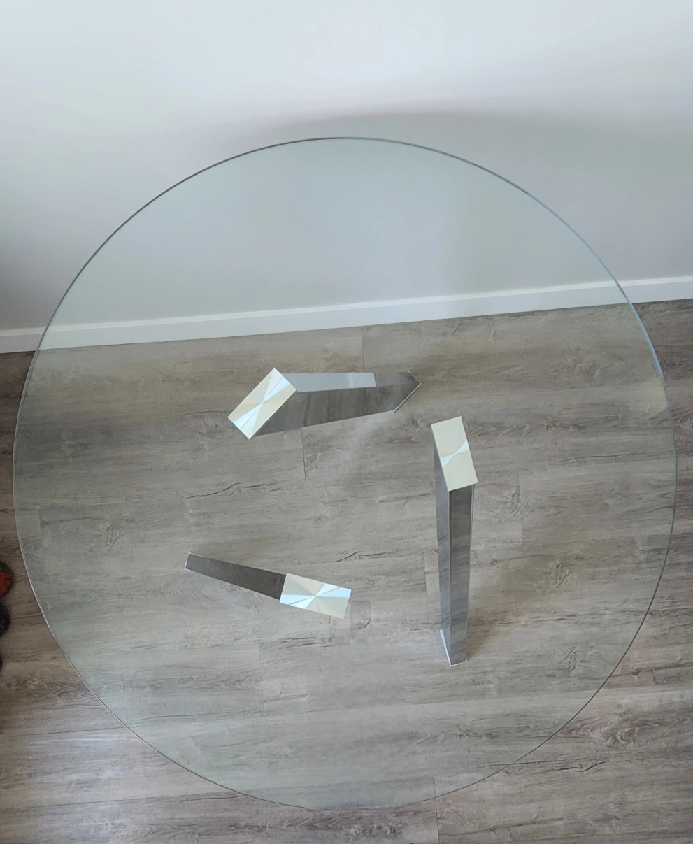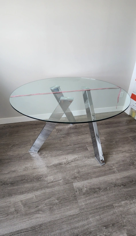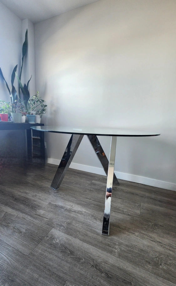 Elegant dining table that seats four. It’s been gently used and has a few small glass scratches, but still looks great.