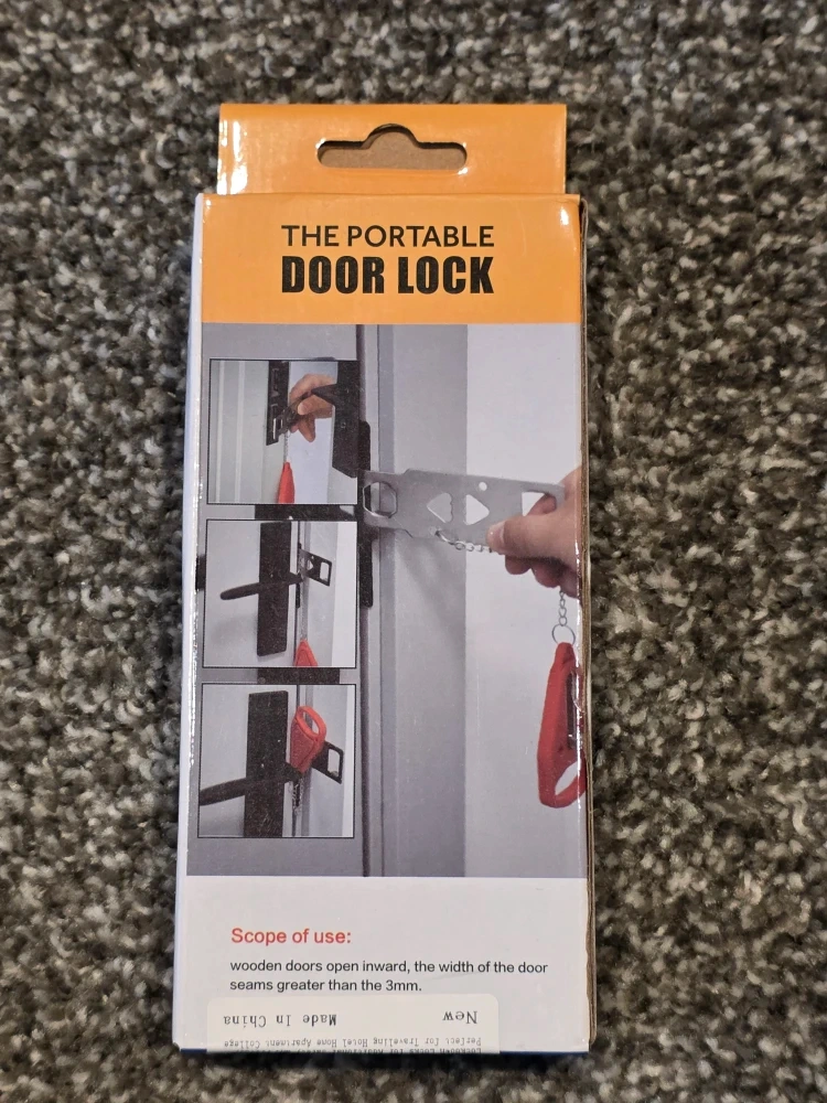 Selling a brand new portable door lock! This is perfect for adding extra security when you're traveling, staying in hotels, apartments, or even college dorms. It's designed for wooden doors that open inward, where the door seams are greater than 3mm. Super easy to use and gives you peace of mind