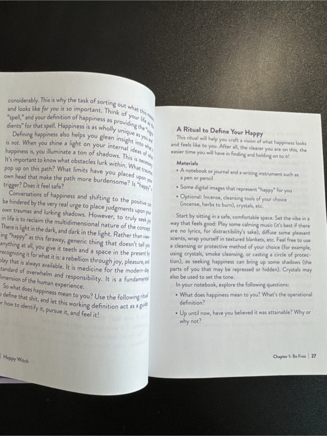 Selling a copy of Happy Witch by Mandi Em. It's a book filled with activities, spells, and rituals to calm the chaos and find your joy. A great read for anyone interested in witchcraft and self-discovery