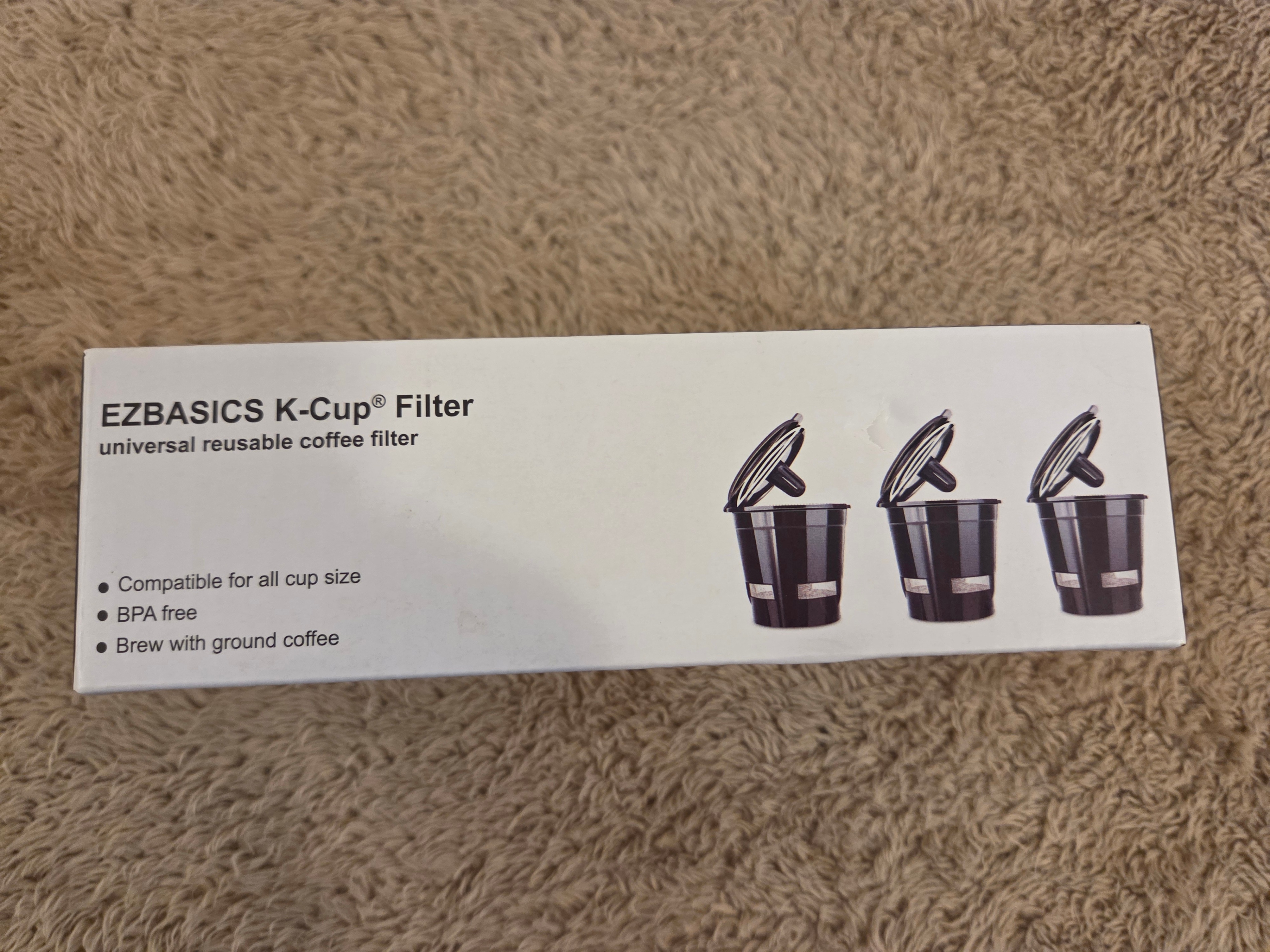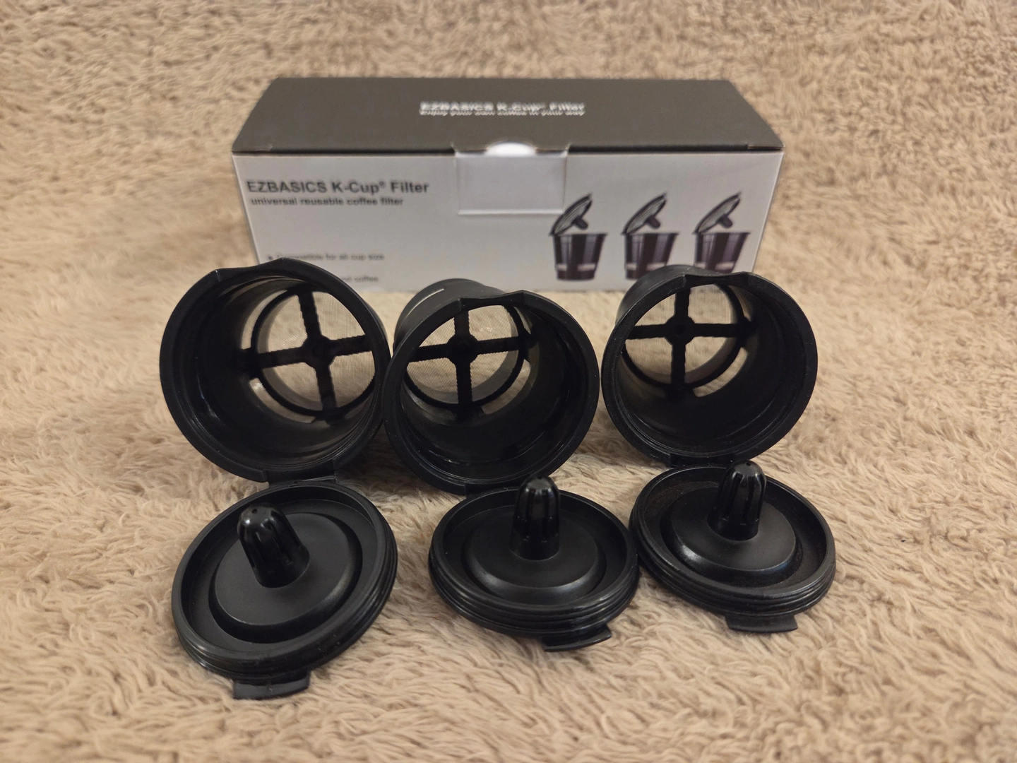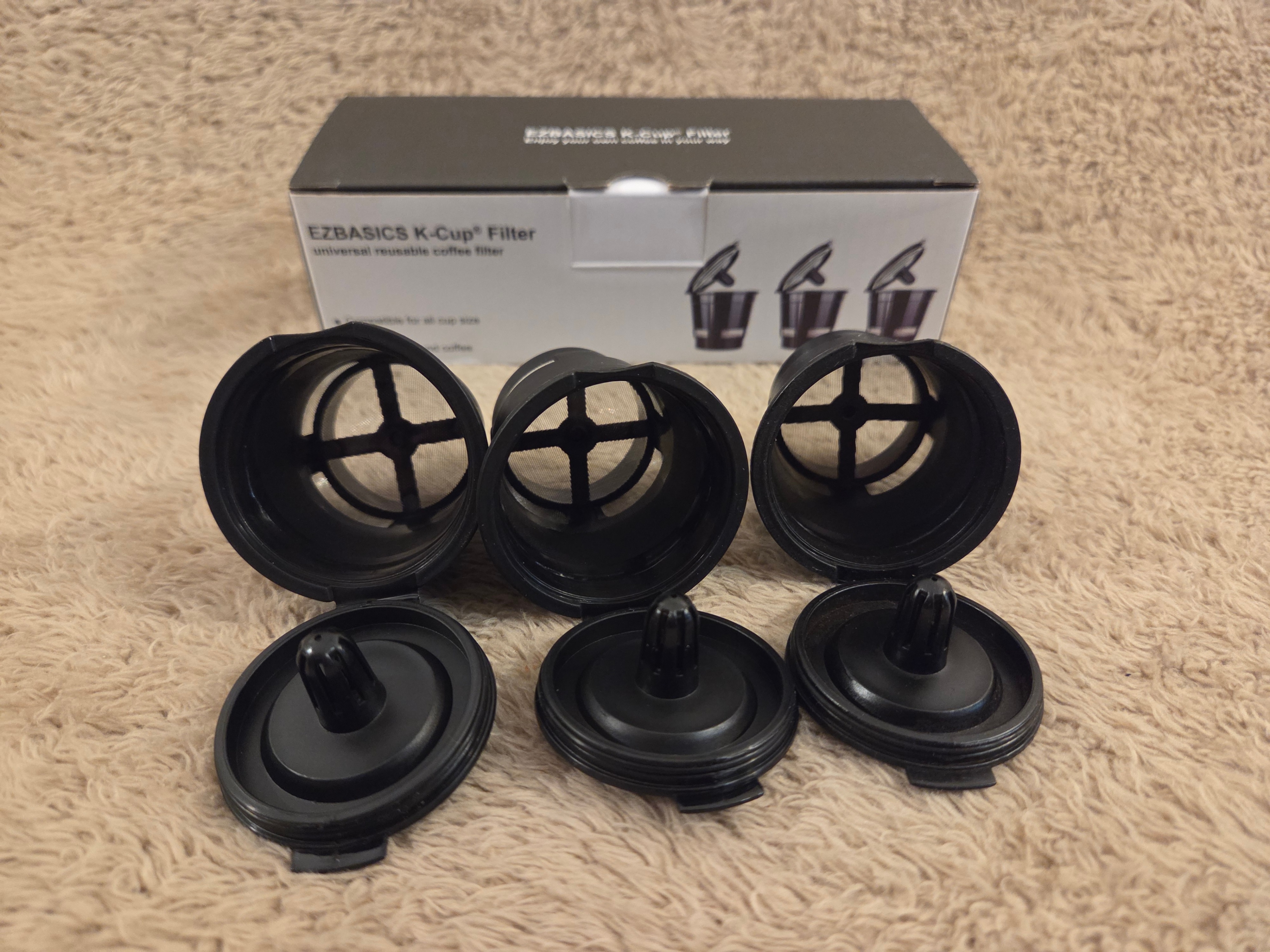 Set of 3 original EZBASICS reusable K-Cup filters for Keurig-style brewers. Two are brand new and unused, one was used briefly – overall condition is like new.