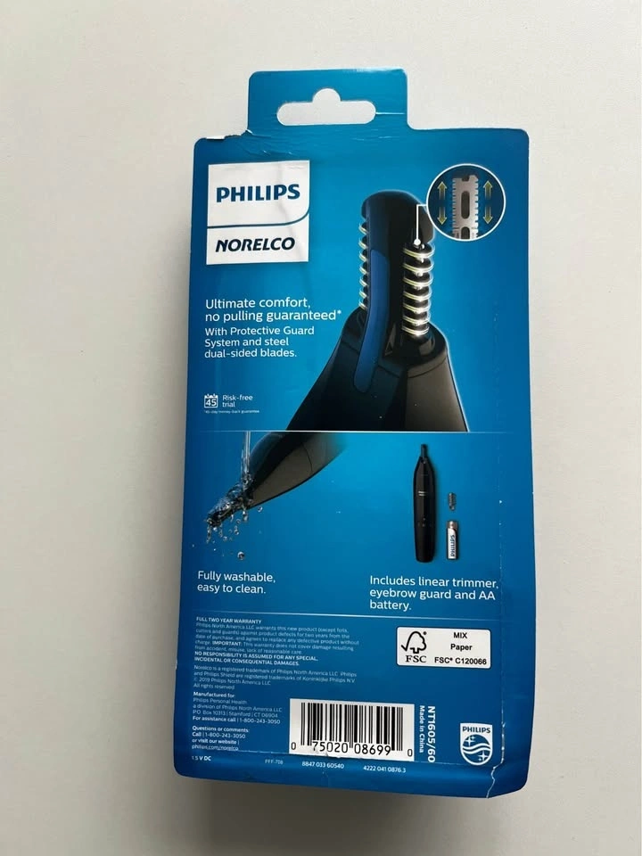 Selling a brand-new Philips Norelco Nose/Ear/Brow trimmer. Still in original packaging and never opened. Comes with the trimmer, extra attachment, and battery included.