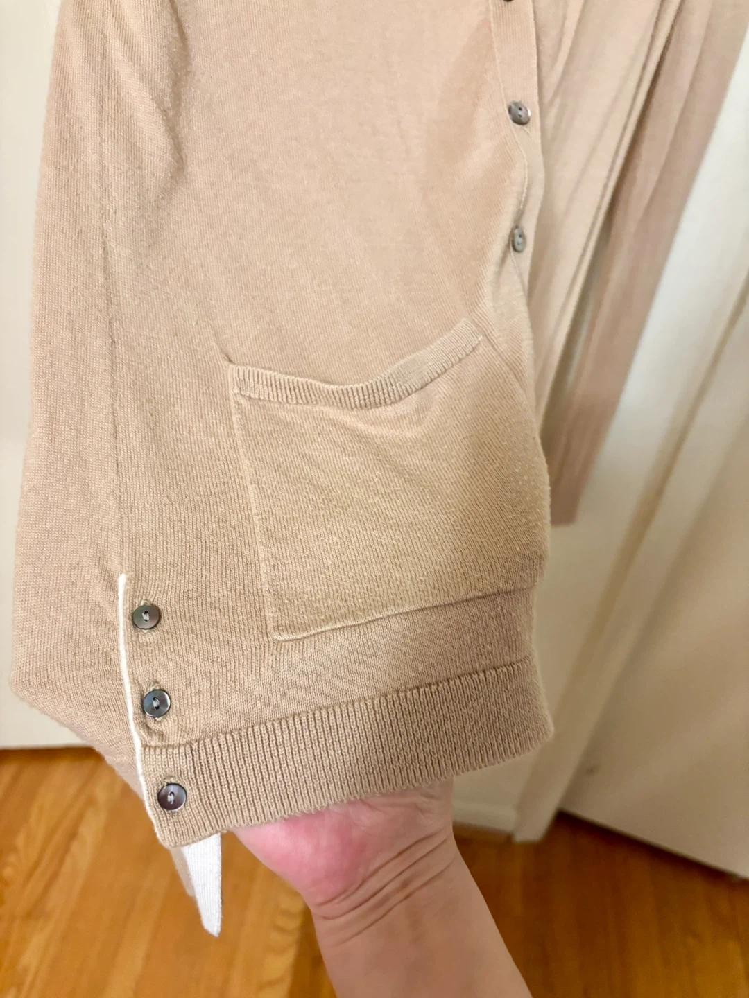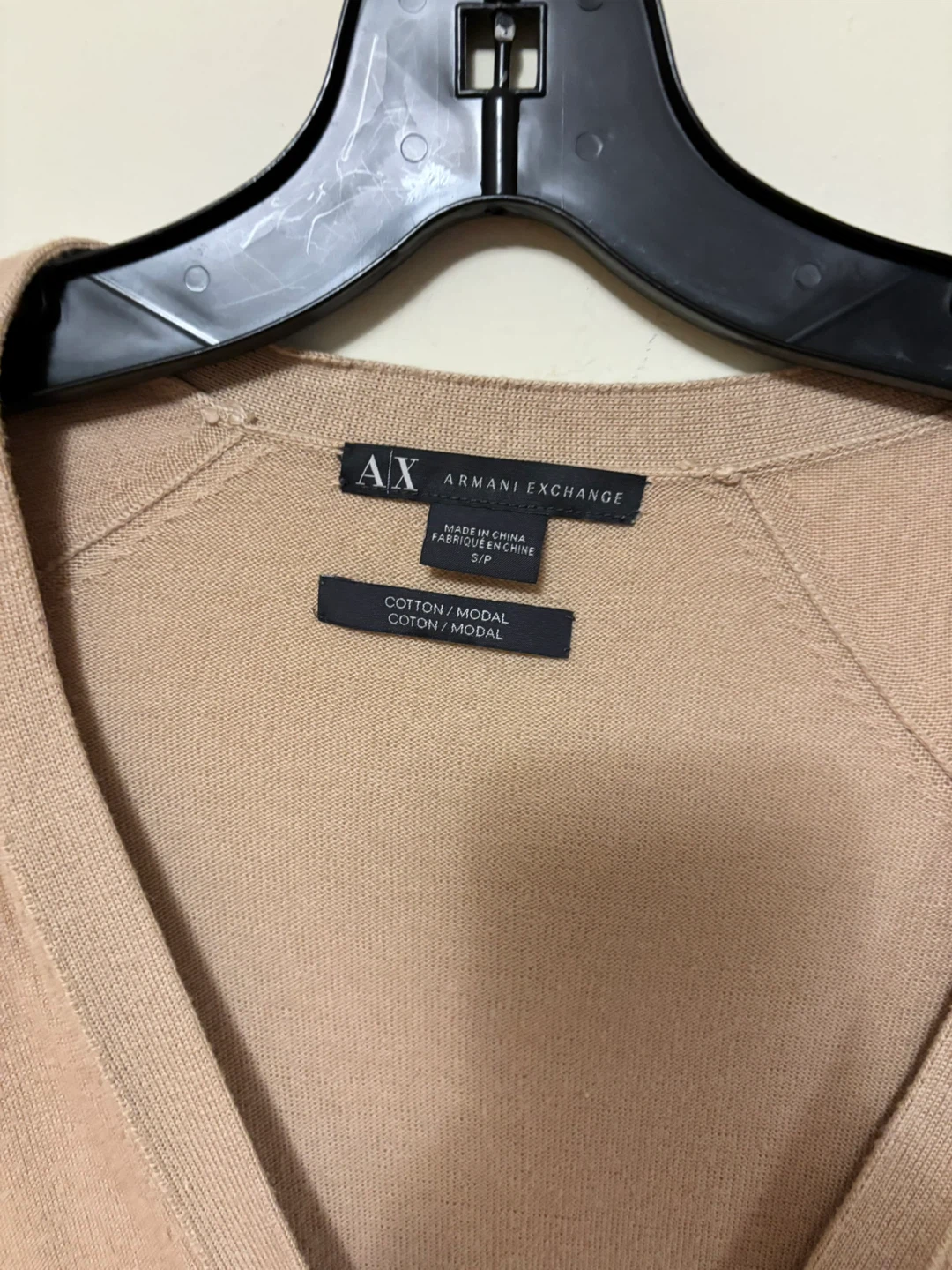 Armani Exchange cardigan in a lovely beige colour. It's made of 60% cotton and 40% modal, making it super comfy. Size is S/P.