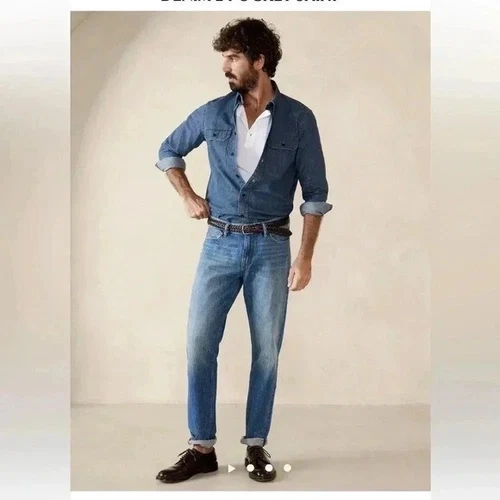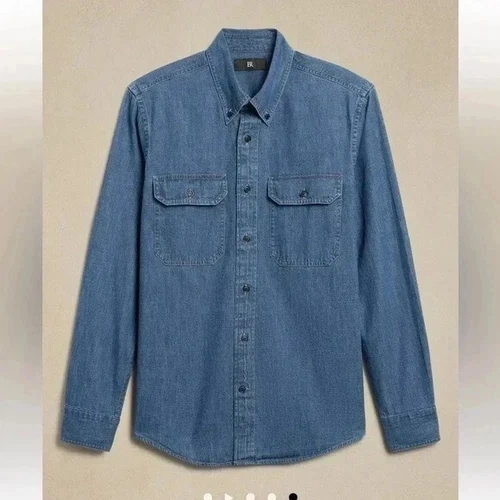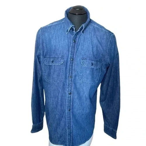 Brand new with tags MSRP $130 USD. The first four pictures are of the actual product. The rest are for you to see the fit. Cut from a soft denim fabric in a weight that's just slightly heavier than chambray, this denim shirt is unlined so it's easy to layer through the seasons. Standard fit. Button-down collar with button-front closure. Chest pockets. Shirttail hem. Long sleeves. Hip length. Model: Size M, 6'2" (188cm). Material: 100% cotton. Excellent condition comes from a pet free smoke free home