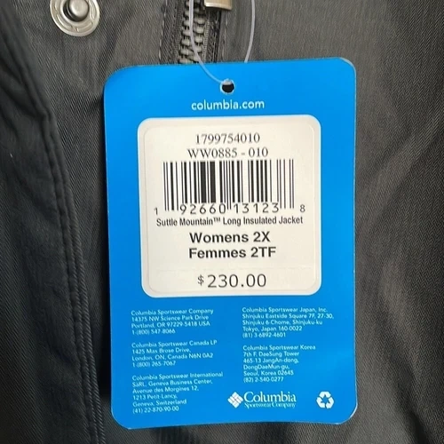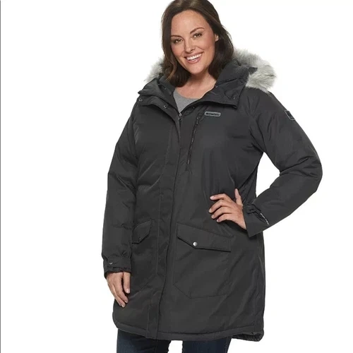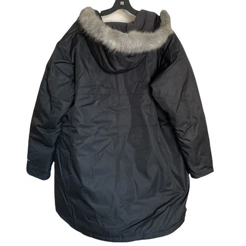 Brand new with tags. MSRP $230 USD Omni-Heat™ thermal reflective. Water resistant fabric. Faux down insulation. Attached, adjustable storm hood. Sherpa lined hood. Chin guard. 2-way centerfront zipper. Zippered chest pocket. Hand pockets. Adjustable cuffs. Removable faux fur. Center Back Length: 37" The Columbia size guide for 2X is: 20-22 W Chest: 47-49" Waist: 47-49" Hips: 49-51" Shell: Melange 100% Polyester. Lining: Omni-Heat™ Reflective lining 100% polyester. Insulation: 100% polyester synthetic down. Excellent condition comes from a pet free smoke free home.